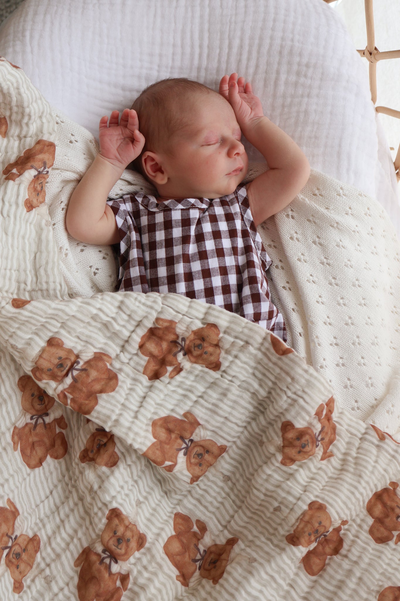 Keep your little love cosy and warm in our beautiful, soft 100% cotton Heritage Muslin Swaddle. Beautifully created using 6 buttery soft layers of 100% muslin cotton.
