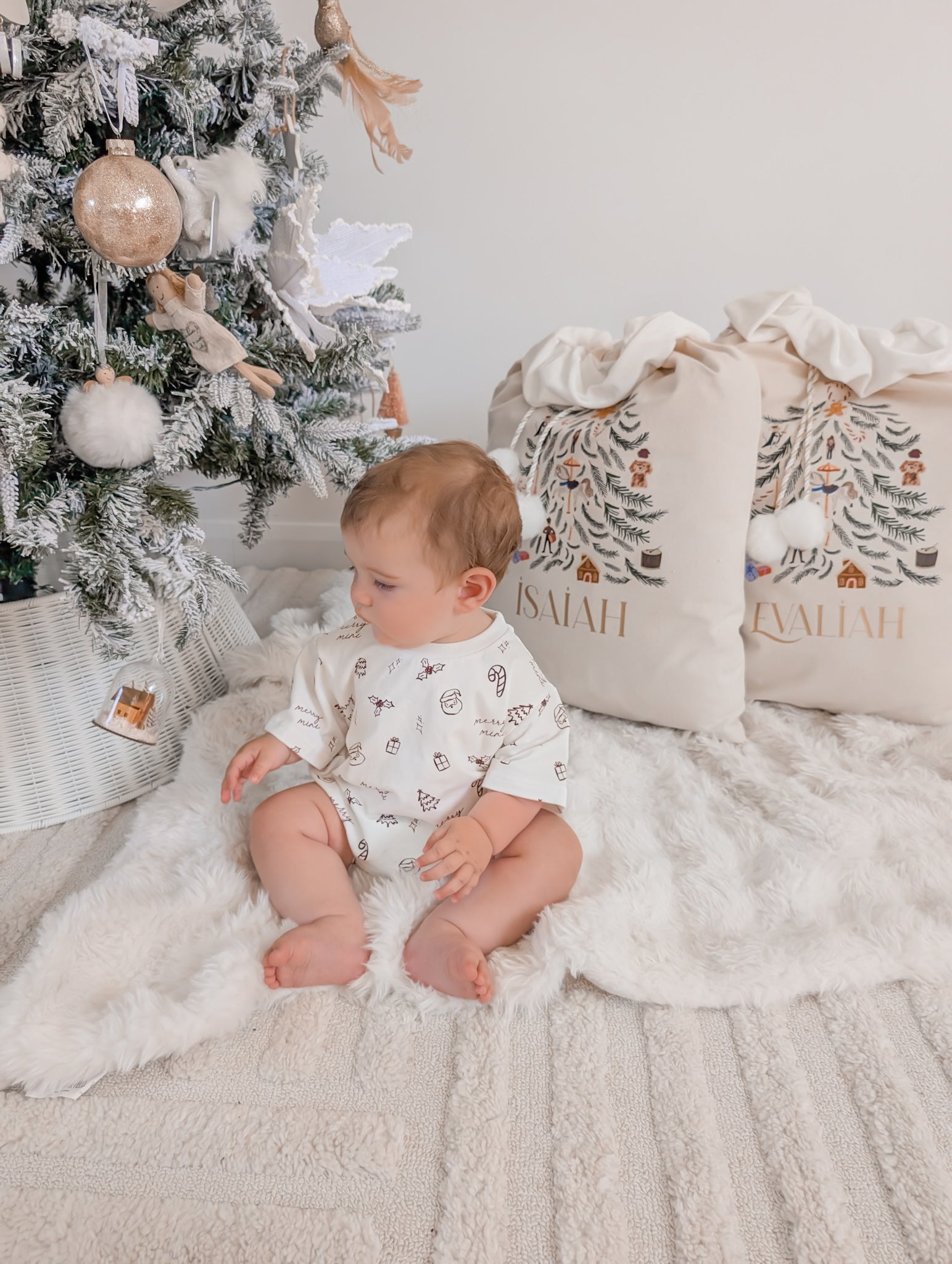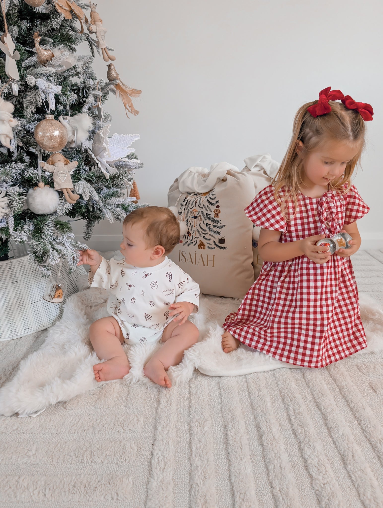 This short sleeve romper is a perfect festive essential. Made for a comfy boxy fit available in sizes NB-2Y.