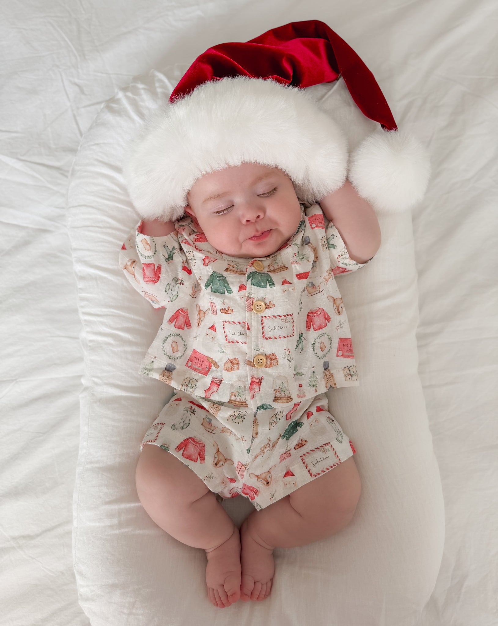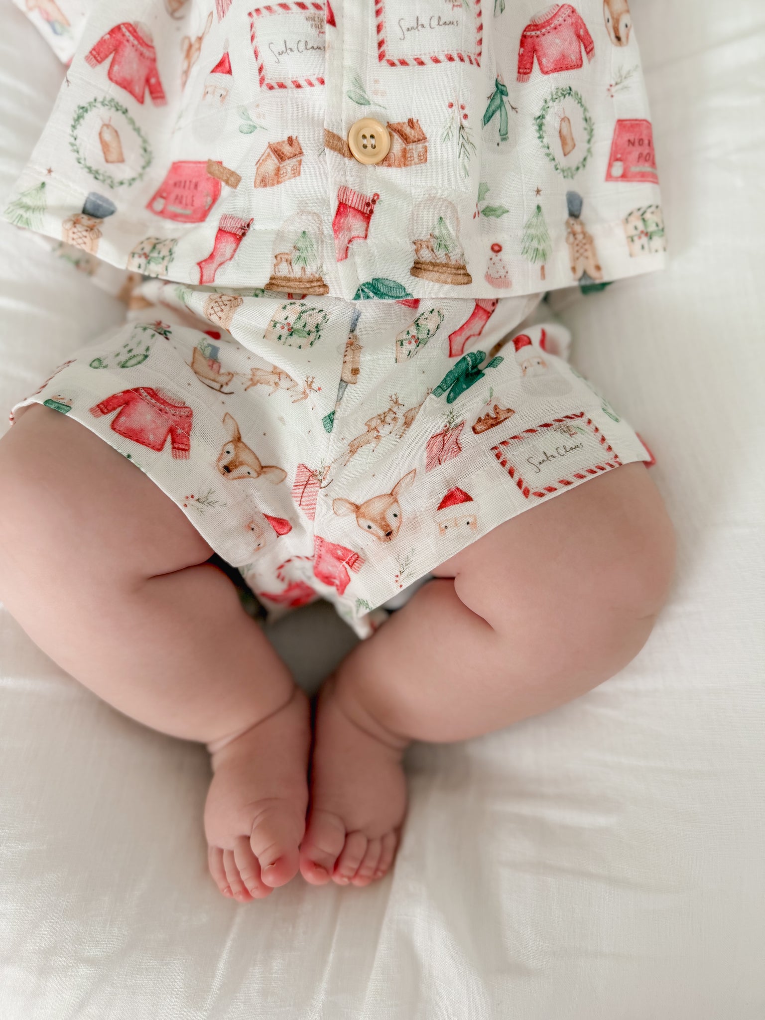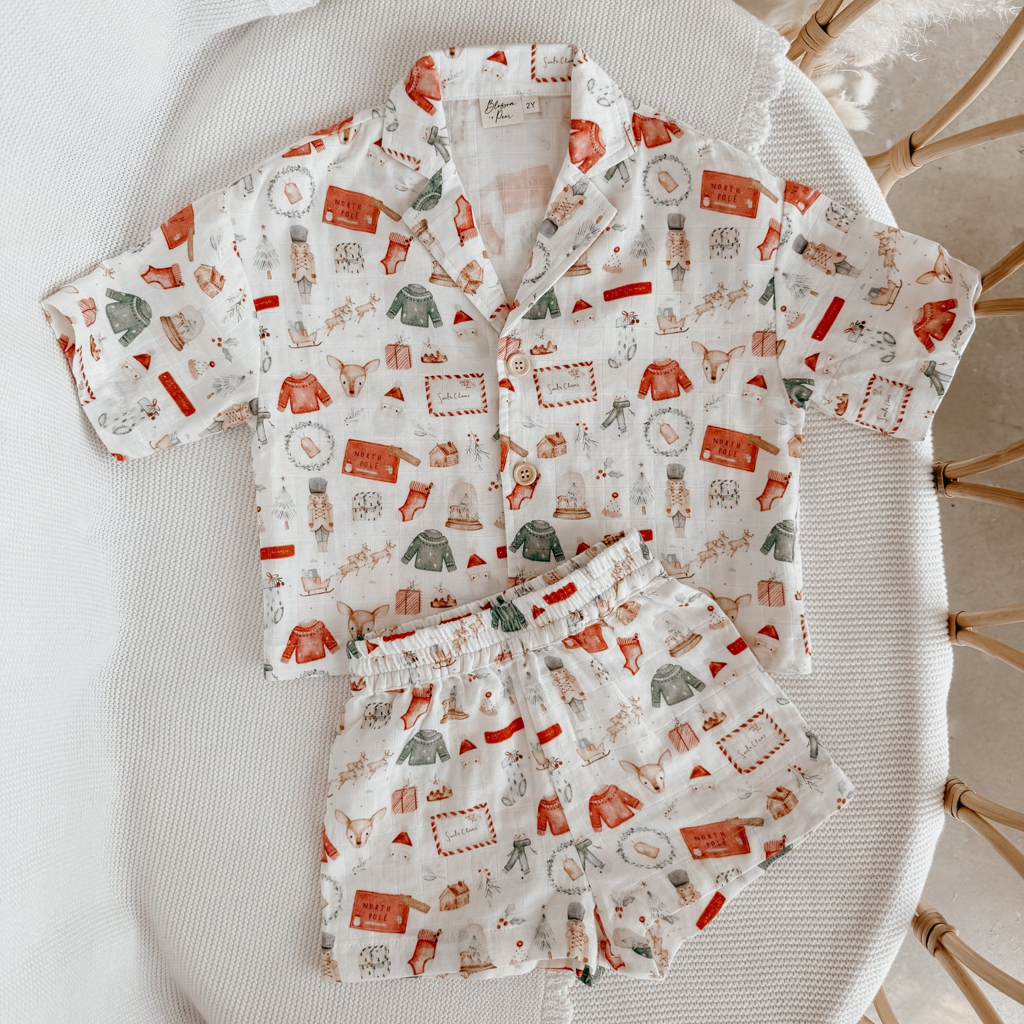 Our North Pole Lounge Set is the perfect outfit for your little love. With an adorable gingerbread print and buttons down the front, it is lightweight and breathable ensuring maximum comfort. A must-have wardrobe staple this season!