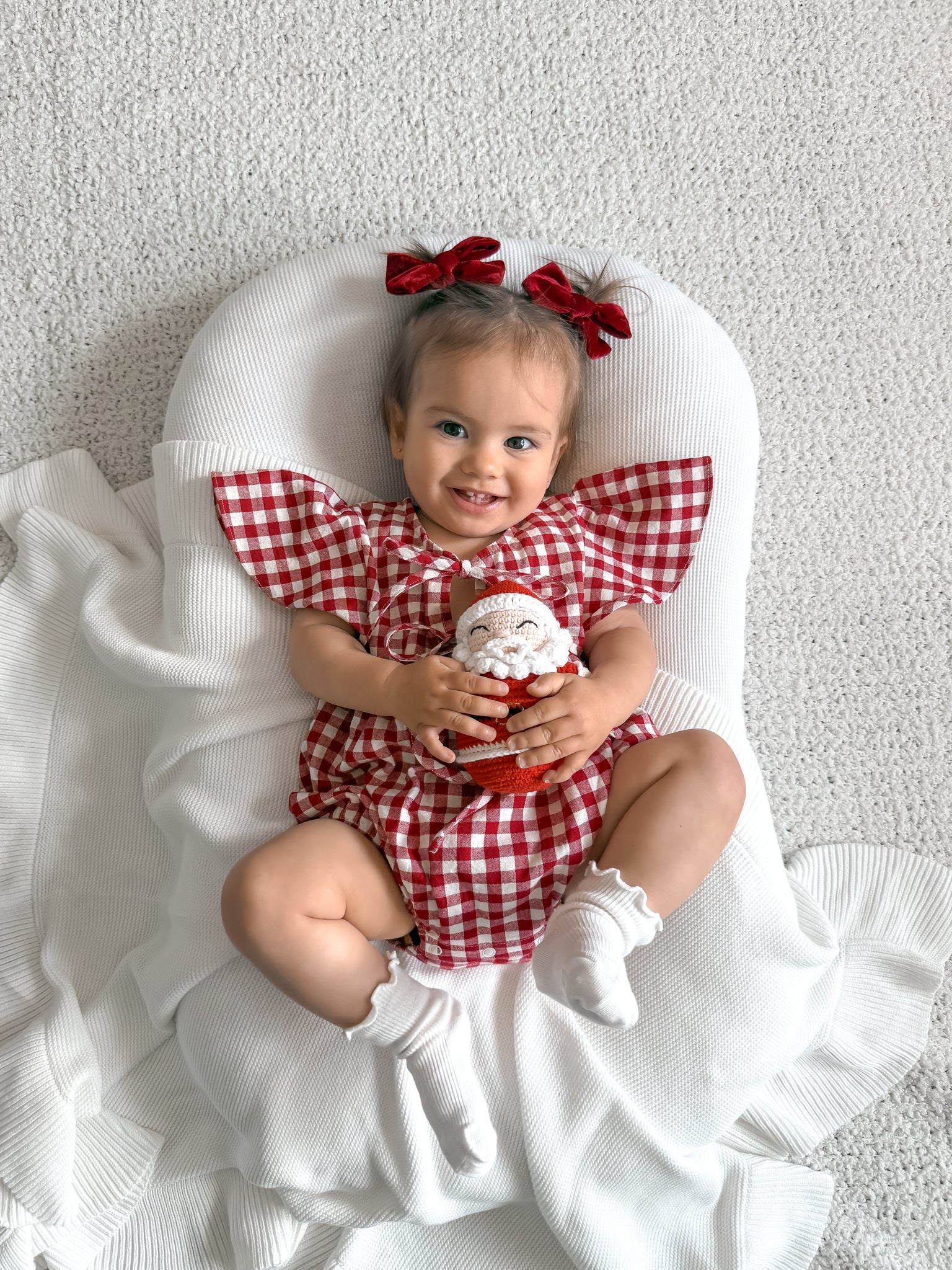 This romper is the perfect piece for your little love. Featuring an adorable gingham print and snaps for easy changing, this darling romper is lightweight and breathable ensuring maximum comfort. A must-have wardrobe staple this season!