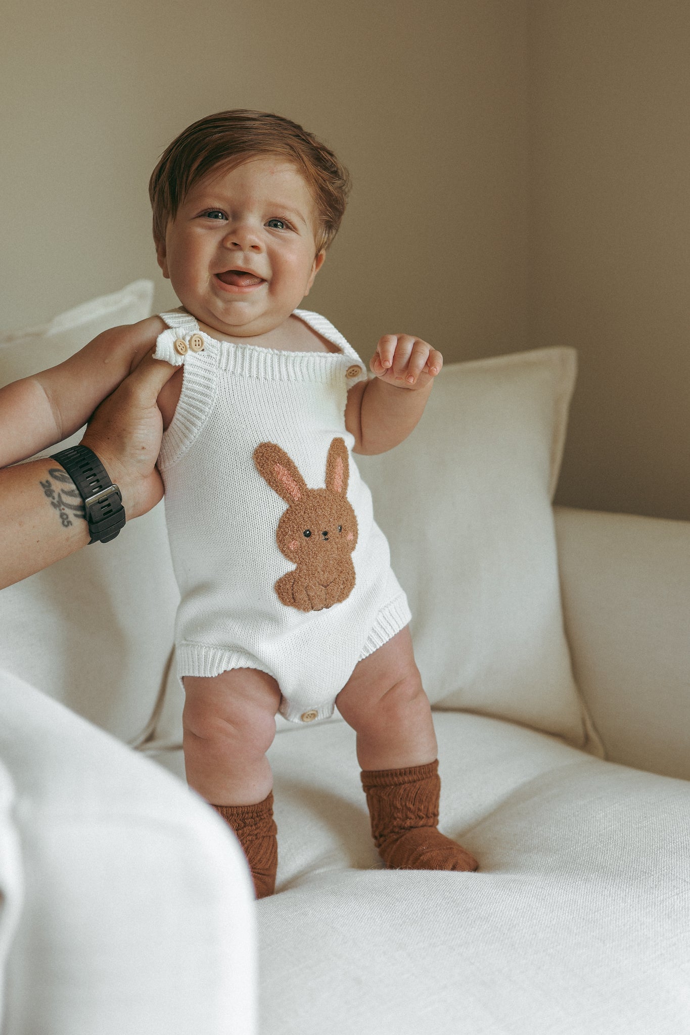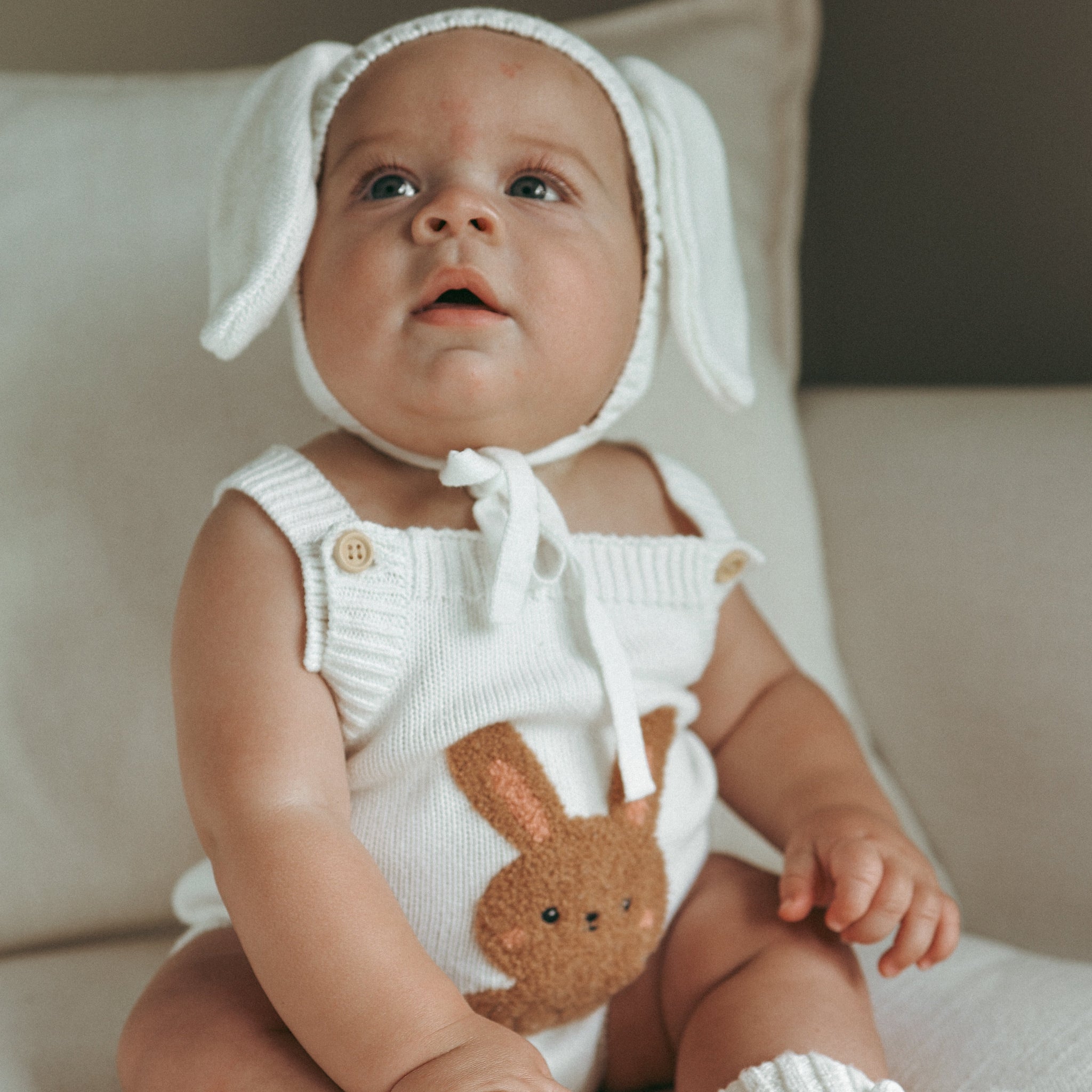Our beautiful cosy Bunny Singlet Mini Knit Romper is the perfect piece for your mini this festive season.