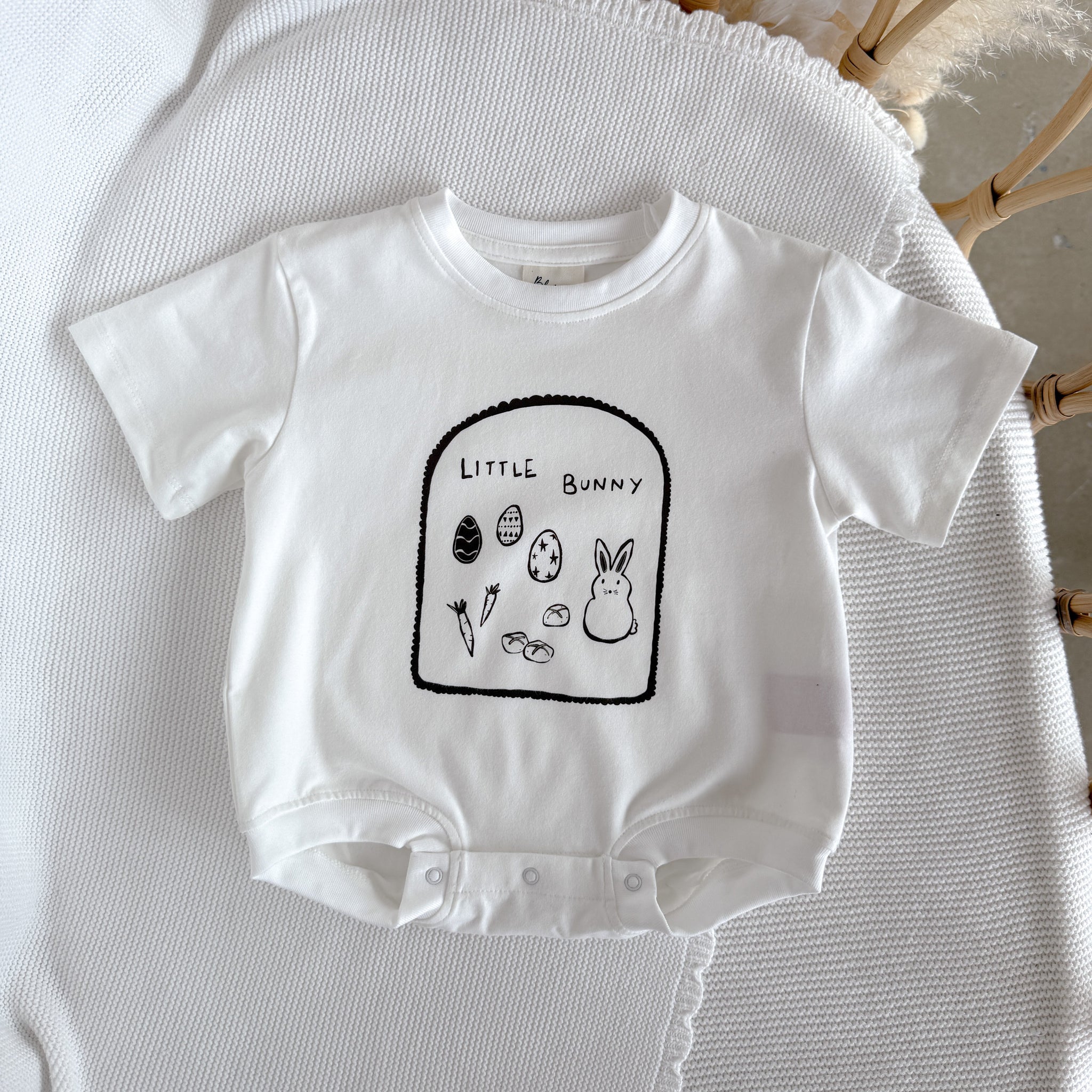 This short sleeve romper is a perfect playful Easter essential. Made for a comfy boxy fit available in sizes 0-3 - 2Y. Size up for an oversized look.