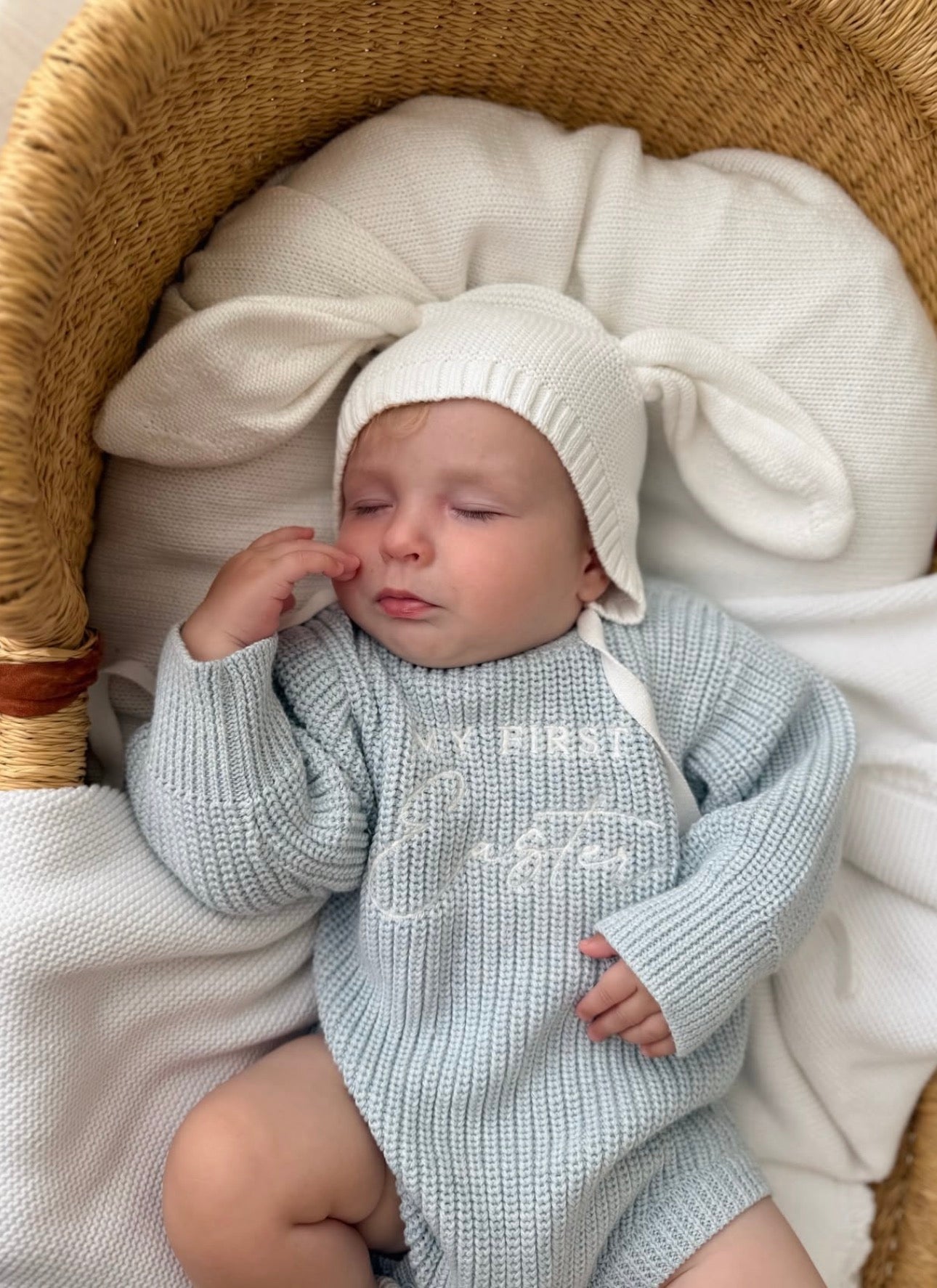 Our beautiful cosy embroidered 'My First Easter' Knit Romper is the perfect piece for your little love.