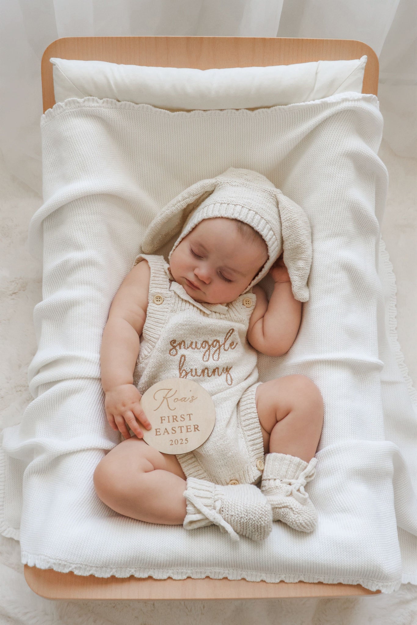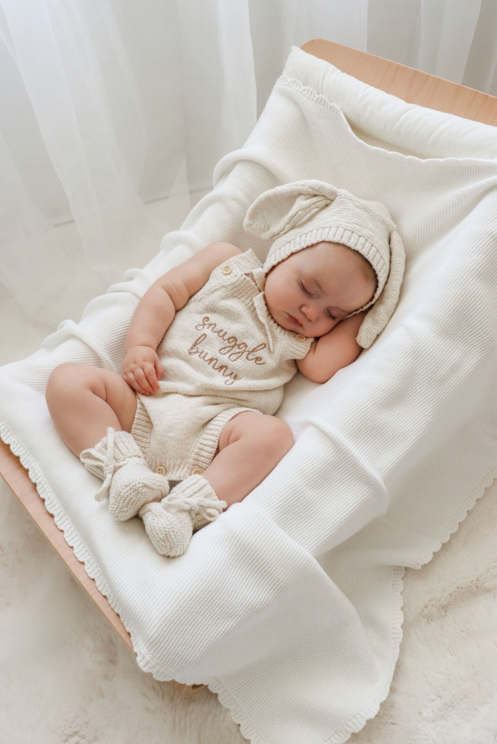 Our beautiful 'Snuggle Bunny' Singlet Knit Romper is the cutest Easter piece for your little love.
