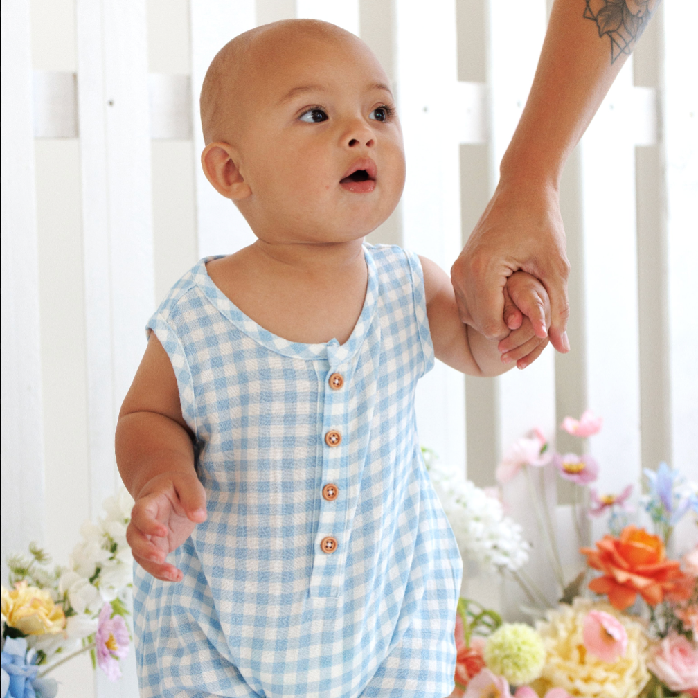 Our Bluebird Gingham Playsuit is the perfect piece for your little love. Featuring two adorable pockets and snaps for easy changing, this darling romper is a wardrobe staple this Summer. Crafted from 100% cotton - lightweight and breathable, ensuring maximum comfort. Available in sizes NB - 2Y.