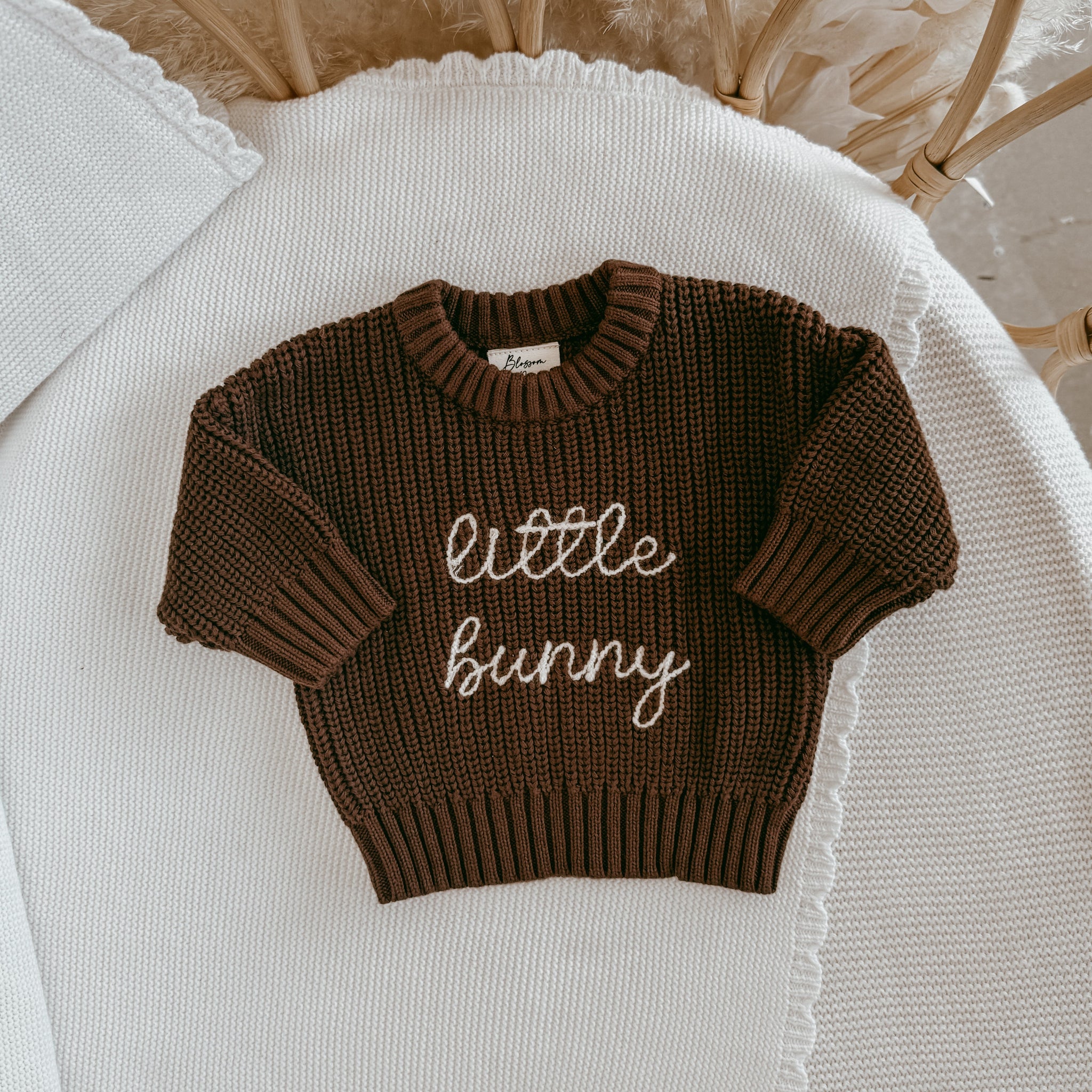 Available in sizes NB - 1Y. Our knit sweaters are designed to be slightly oversized, and we recommend purchasing true to size. Due to the nature of knitted items, please allow a variance of 1-1.5cm for all items.