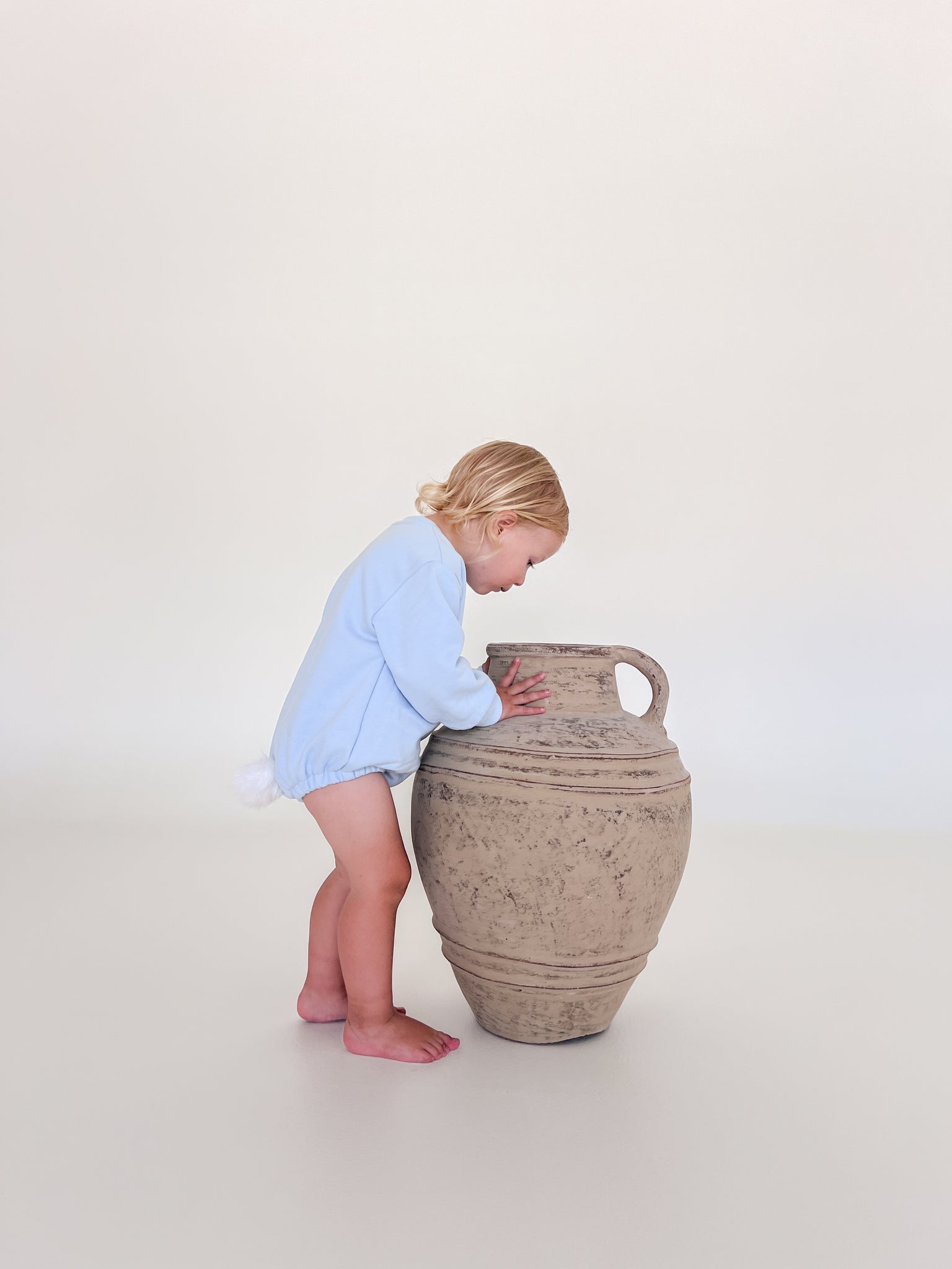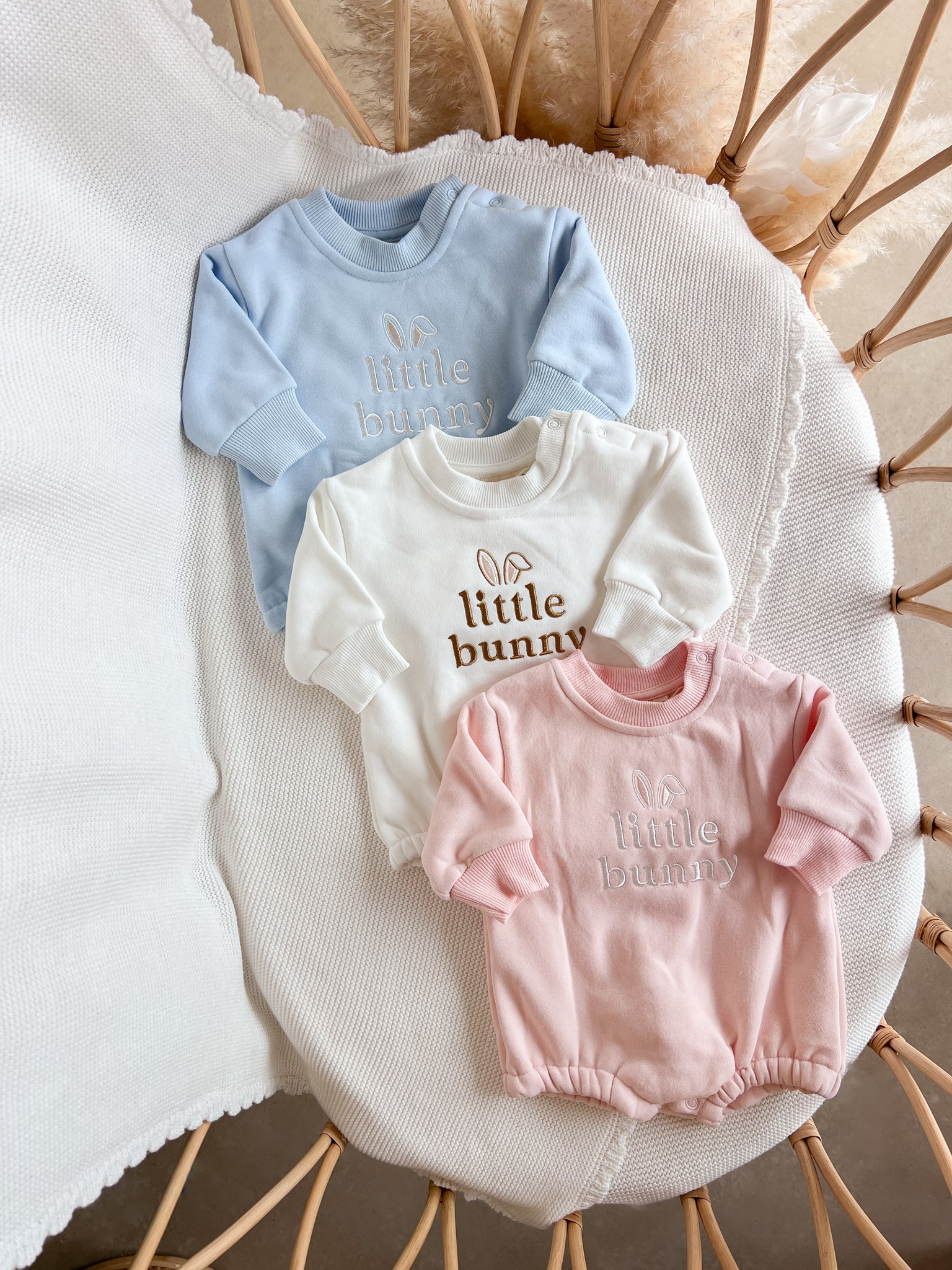 Comfort meets style with our 'Little Bunny' oversized embroidered Bubble Romper. Made from thick, luxuriously soft fleece lined cotton fabric, it is the perfect gender neutral piece for your little love. Featuring snap buttons on the neck for easy changing, embroidered 'Little Bunny' on the chest, and a removable plush bunny tail.