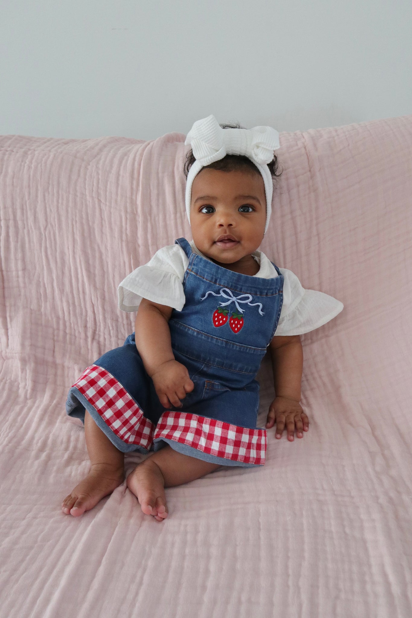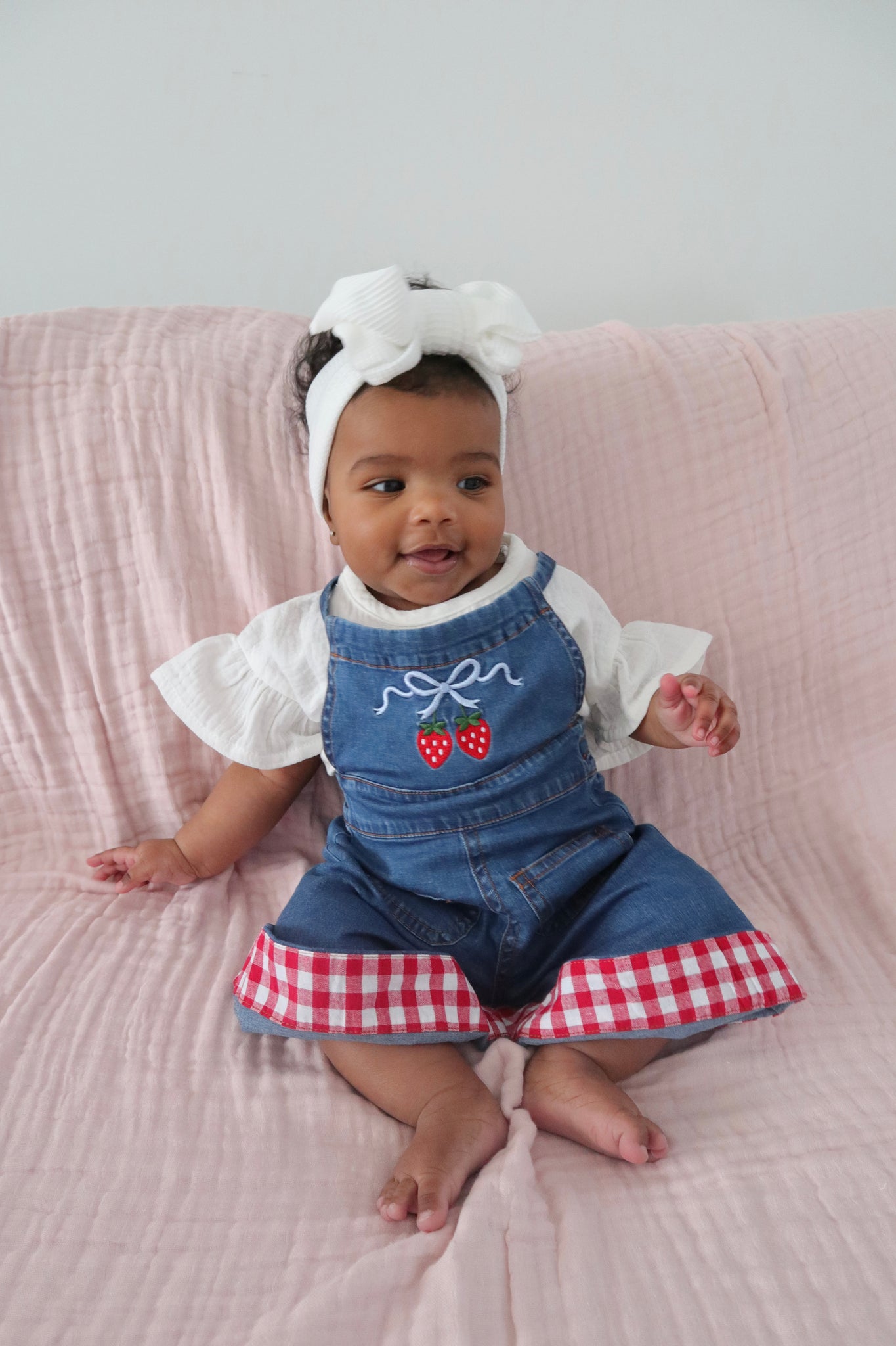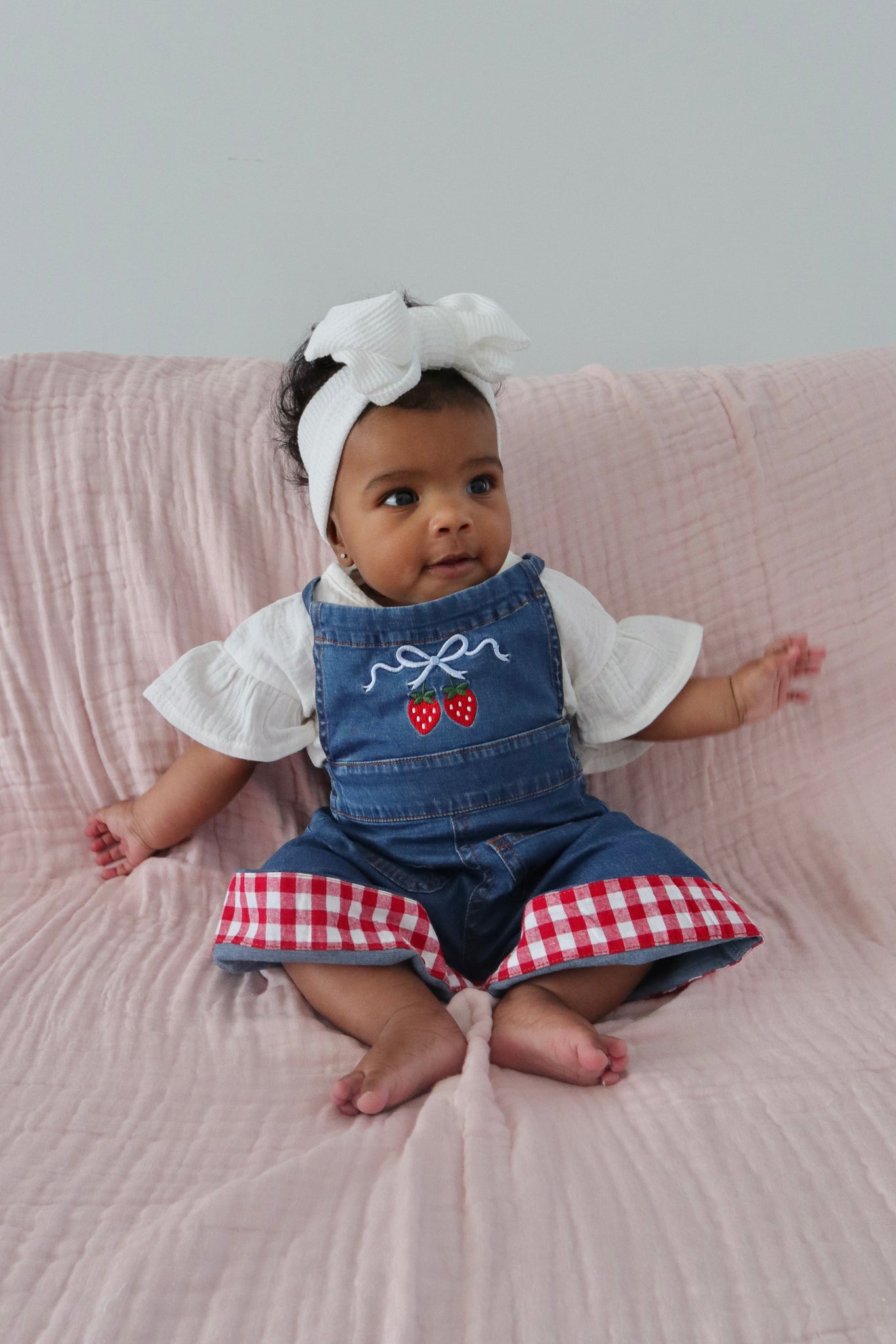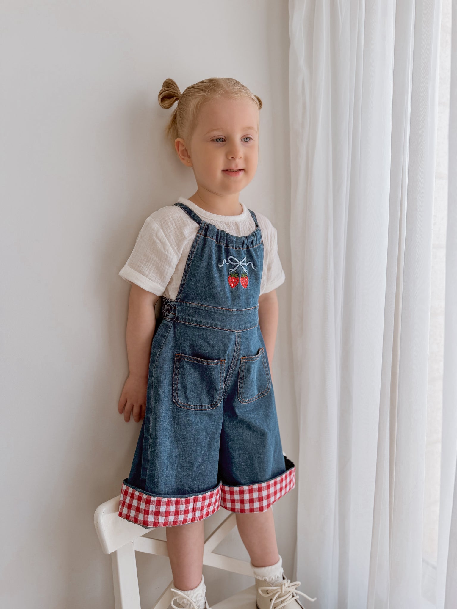 Our Strawberry Picnic Overalls offer an effortlessly cool look with their classic denim fabric and gingham lining. Durable and comfortable, this timeless piece can be dressed up or down for any occasion.