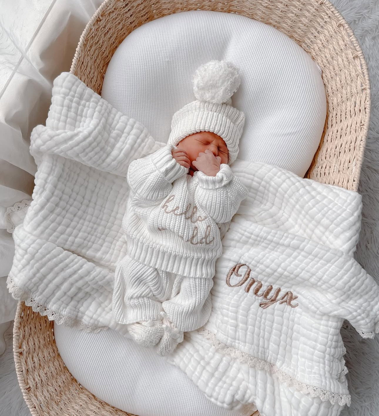 Keep your little love cosy and warm in our beautiful, soft 100% cotton Luxury Muslin Swaddle. Measuring approx. 120x120cm in size, it is perfect for use in a pram, bassinet, cot, and to swaddle in the cooler months.