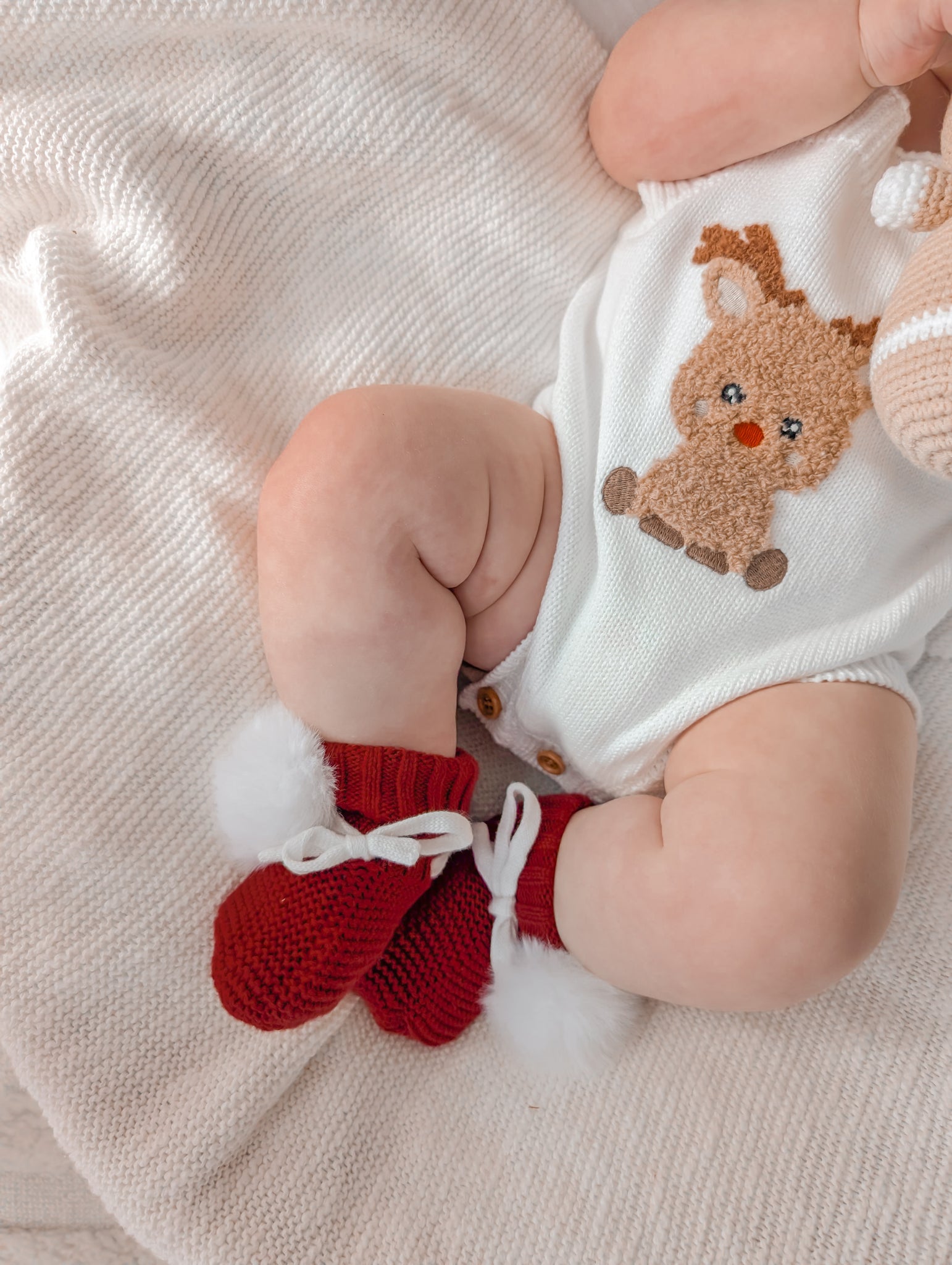 Reindeer Singlet Knit Romper, Beanie & Booties Bundle
