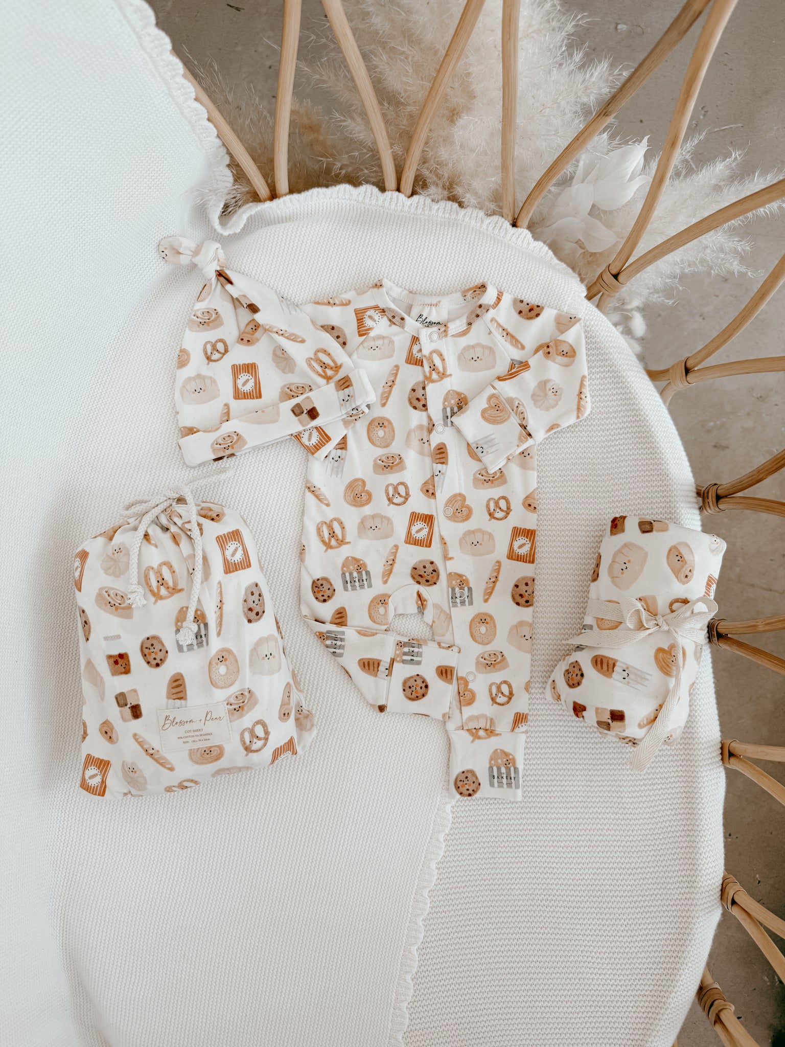 Our Newborn Knotted Beanie is made from 95% cotton and 5% spandex, and designed to match our Growsuit Collection.