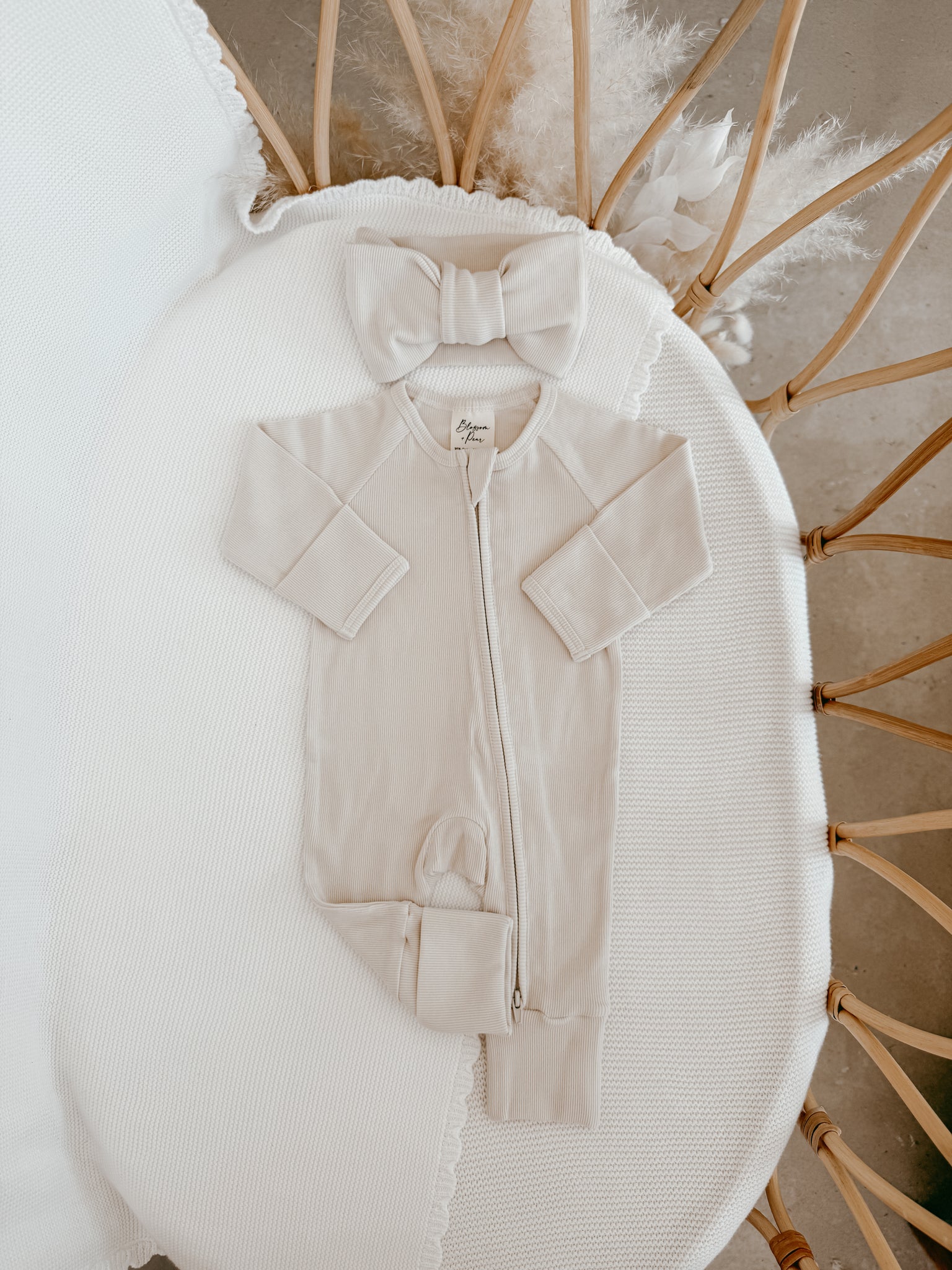 Our Newborn Topknot is made from 95% cotton and 5% spandex, and designed to match our Growsuit Collection.