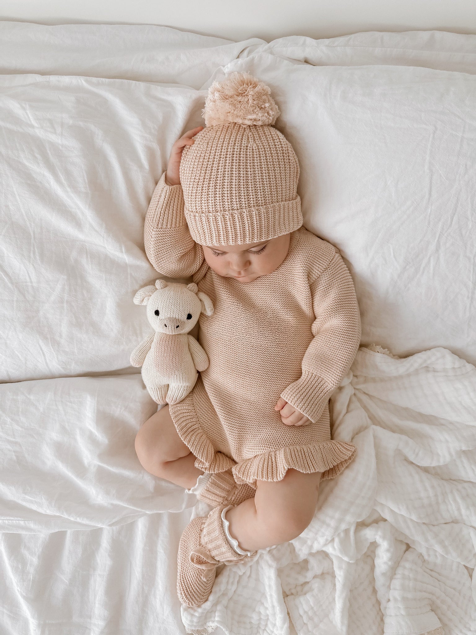 Our beautiful cosy Long Sleeve Frill Leg Knit Romper is the perfect piece for your littlest love.