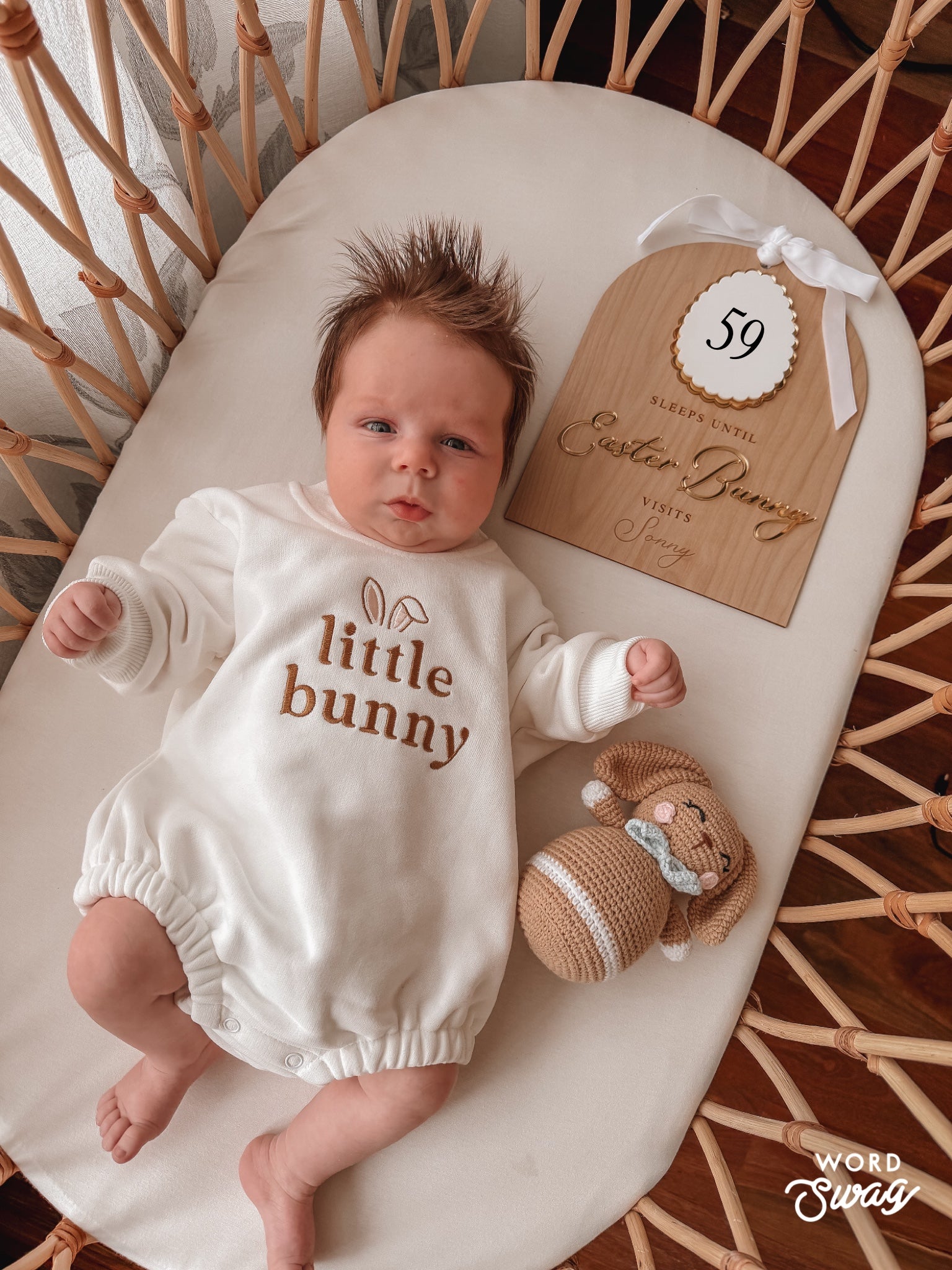 Each plaque is 20x25.6cm and features an acrylic board to write how many sleeps until Easter Bunny visits along with a hanging ribbon. We recommend a white board marker to write with and to avoid anything with a sharp tip or permanent ink.