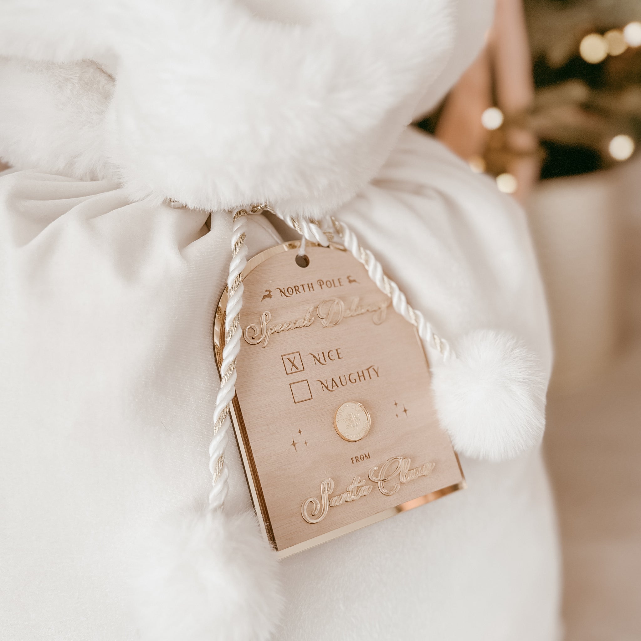 Make your holiday season merrier with this special delivery tag! Perfect to hang on your Santa sack or stocking this tag is sure to make this Christmas season extra special.