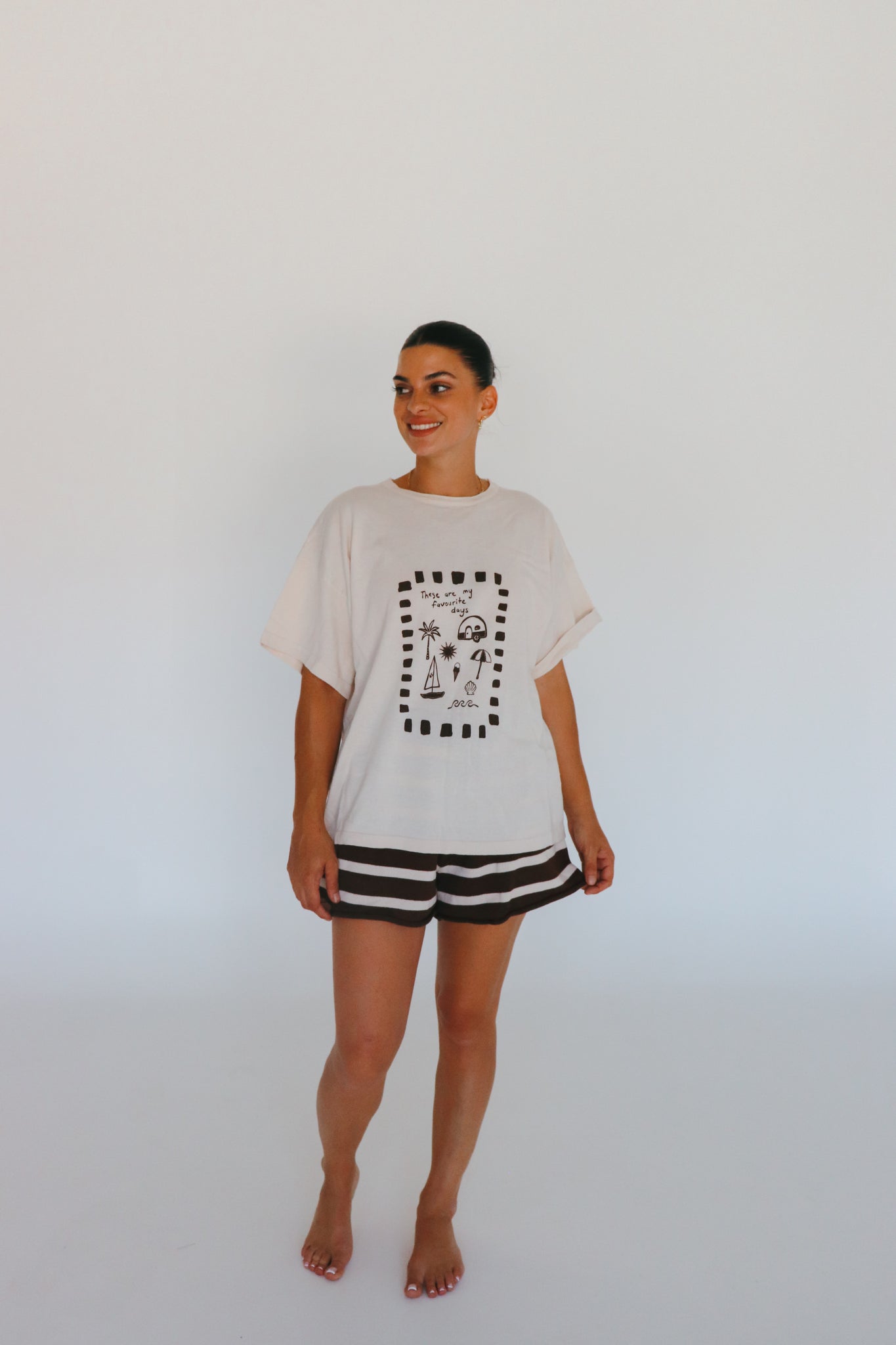 Ladies 'Favourite Days' Tee - Cream & Brown