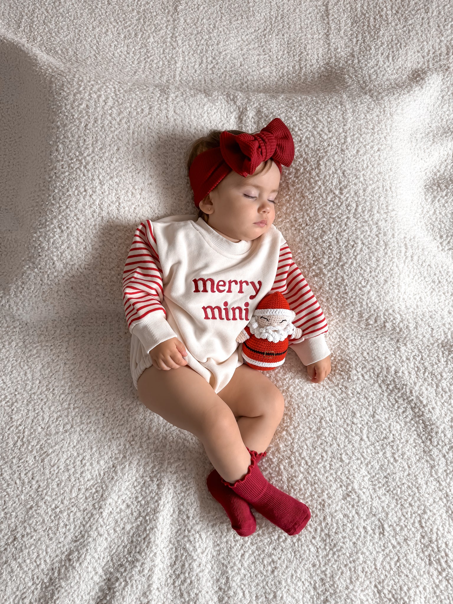 Is there anything cuter than a Merry Mini? Introducing our best selling Sweater Romper with a festive twist. Made from soft cotton fabric and embroidered with the cutest Merry Mini embroidery, this is the perfect gender neutral piece for your little love this holiday season. Featuring snap buttons on the neck for easy changing in size NB-2Y our sweater rompers are now available in long and short sleeves - perfect for warm and cool climates no matter where you are in the world!