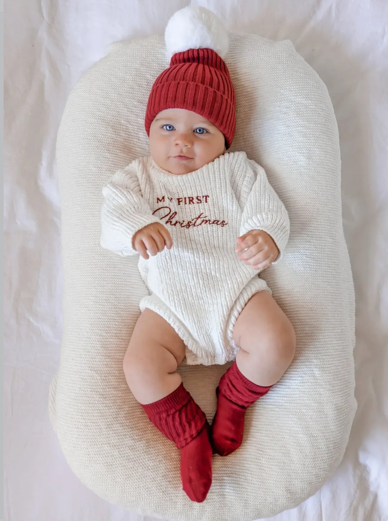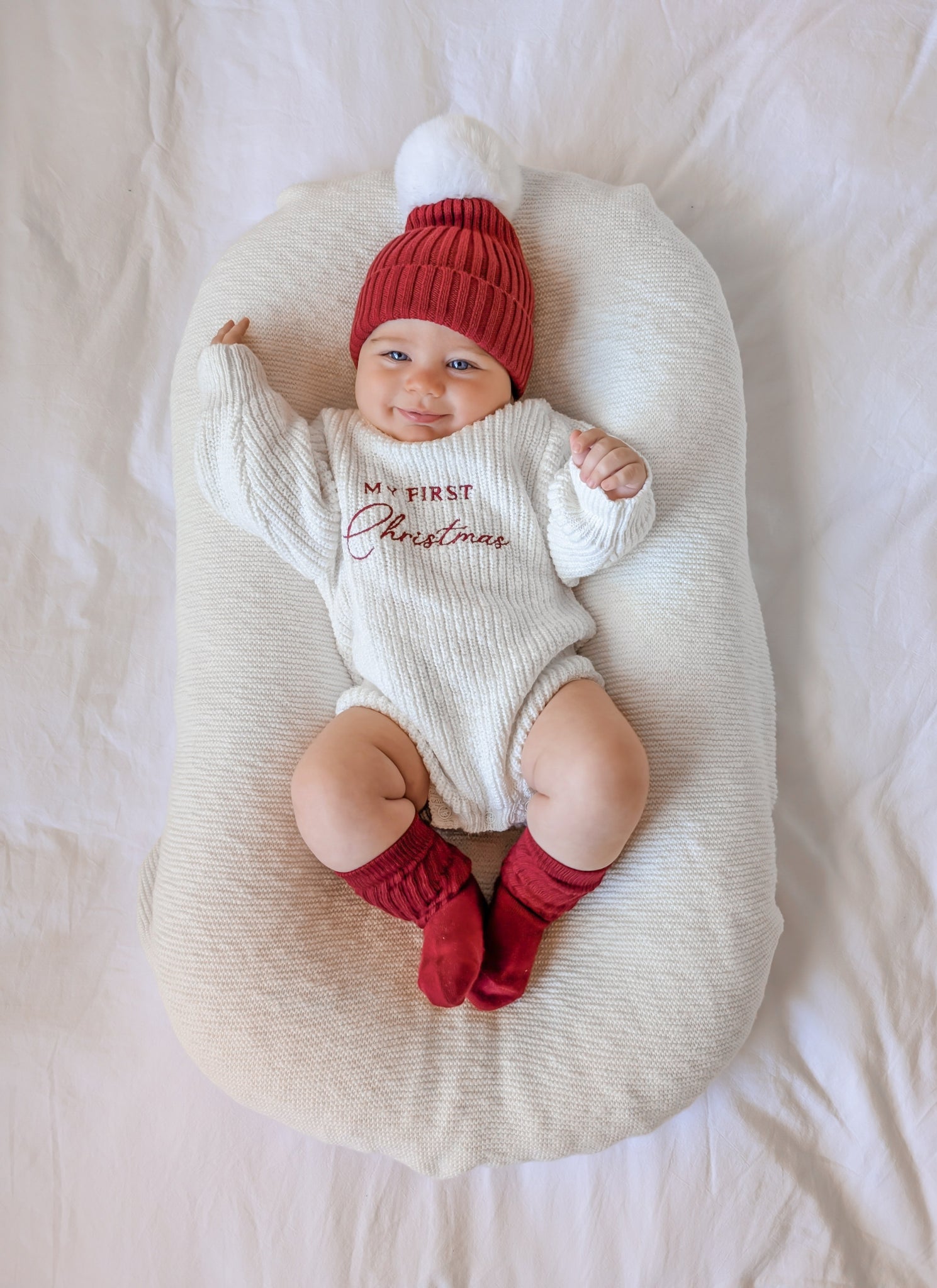 Our beautiful cosy My First Christmas Knit Romper is the perfect piece for your mini this festive season.