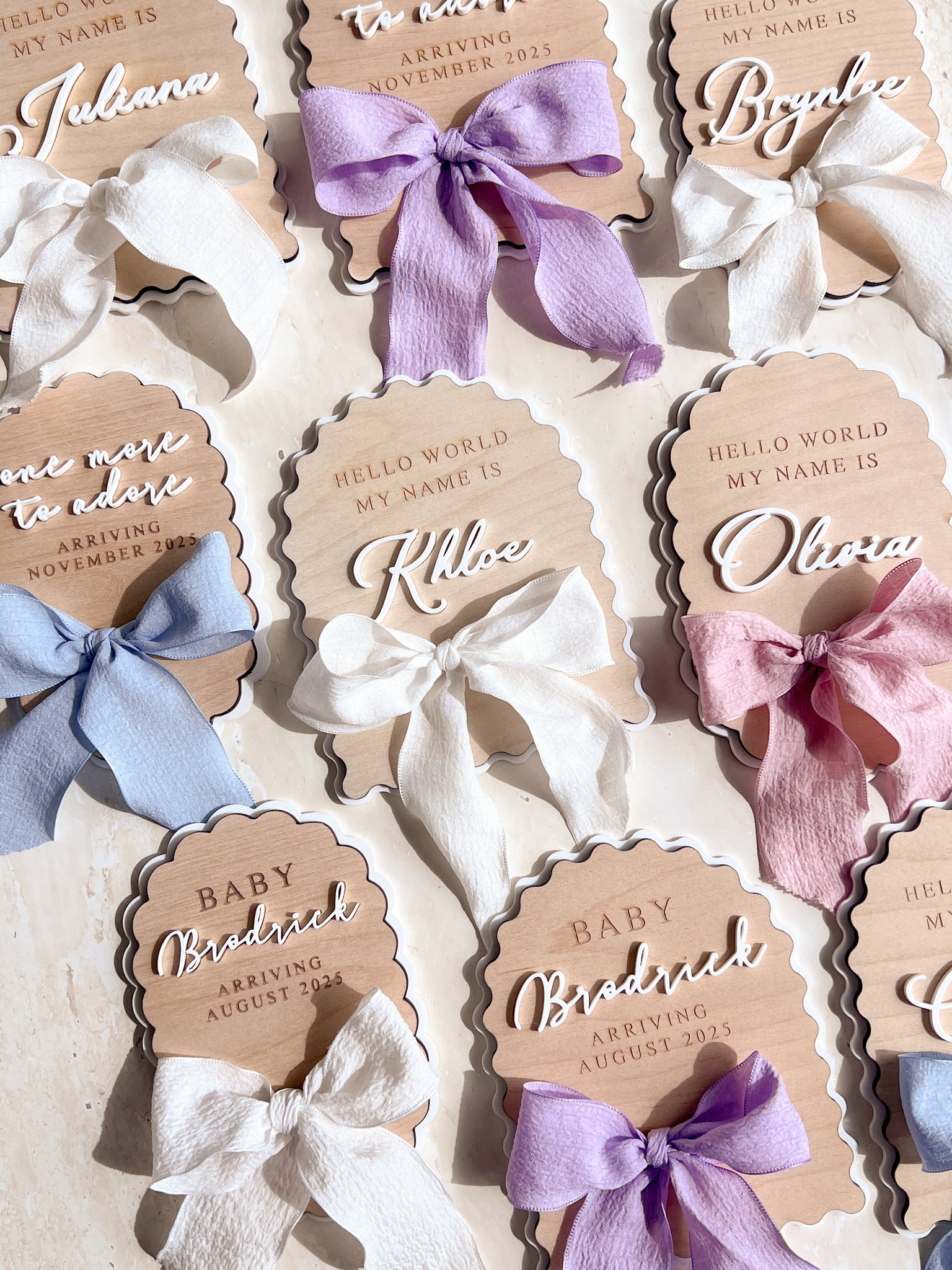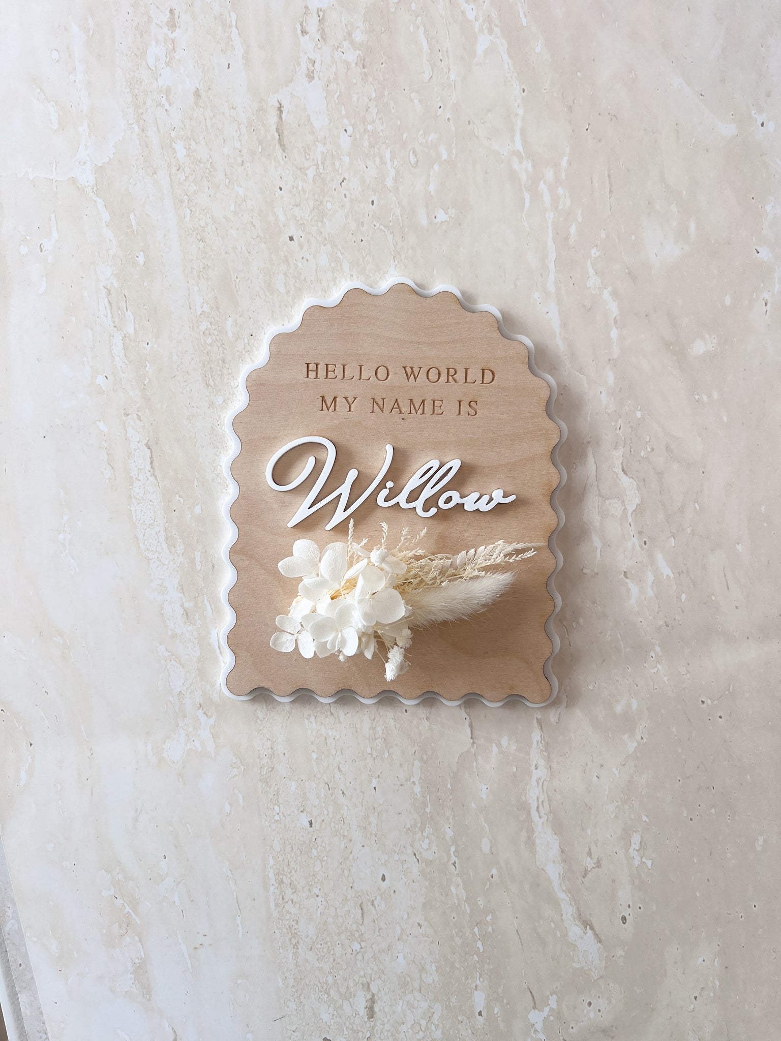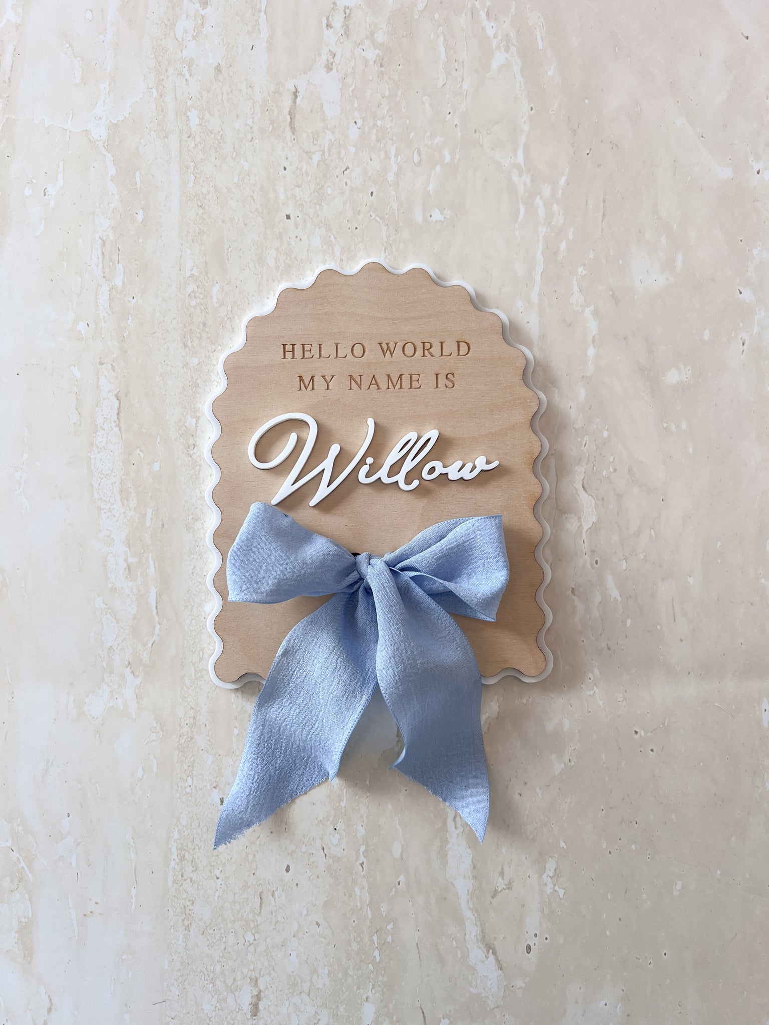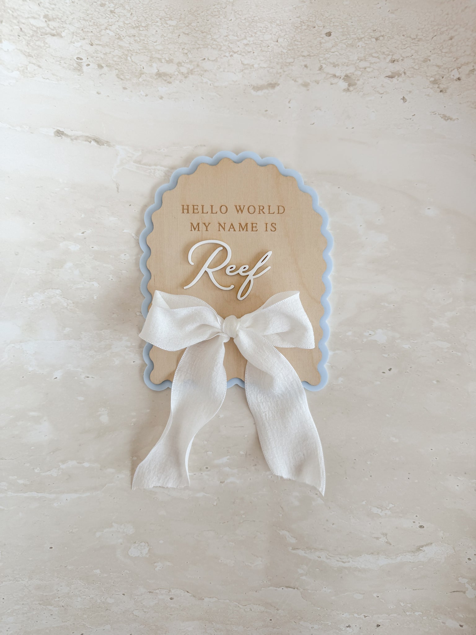 Our custom wooden name plaque makes the perfect announcement for your little babe, and a timeless addition to any nursery. Hand made out of the highest quality sassafras wood with your choice of engraved or acrylic lettering, these plaques will make a beautiful keepsake for the years to come. Each plaque comes with a ribbon in your choice of colour lovingly tied in a bow.