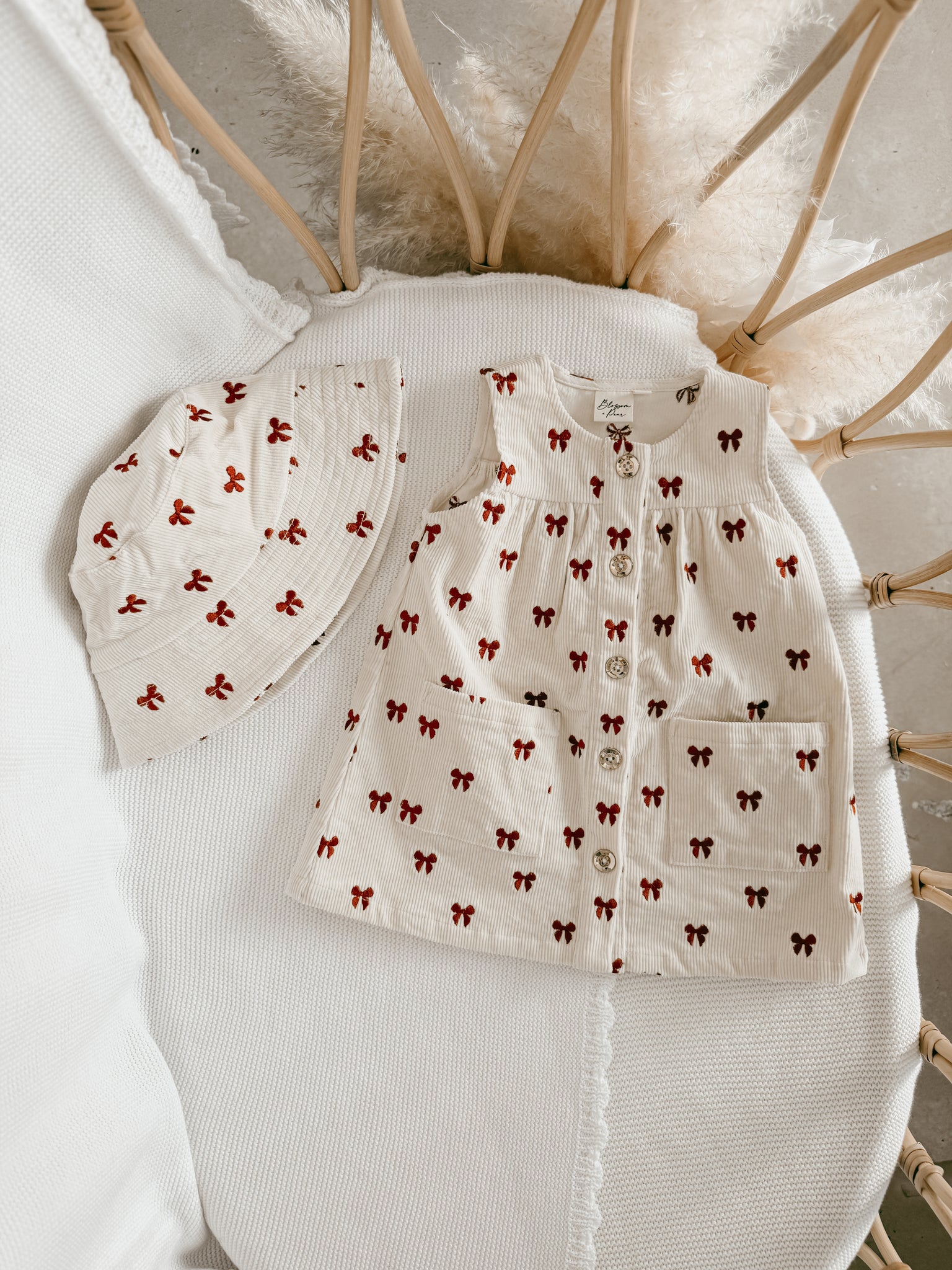Pinafore Corduroy Dress - Red Bow (PRE-ORDER EST. DISPATCH OCTOBER)