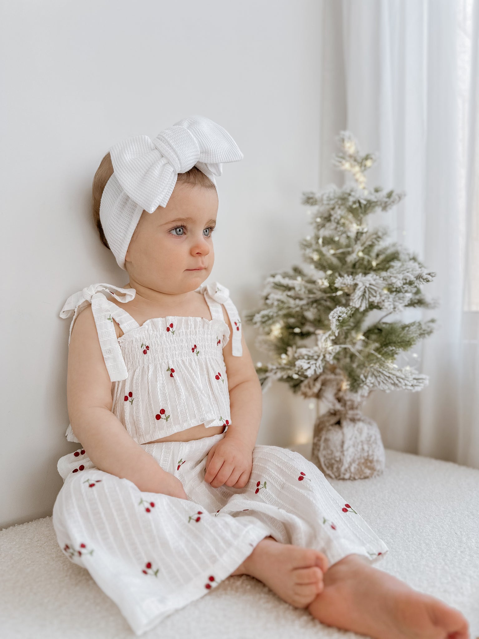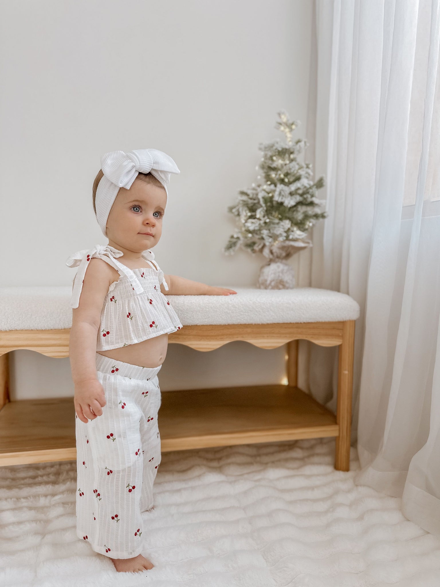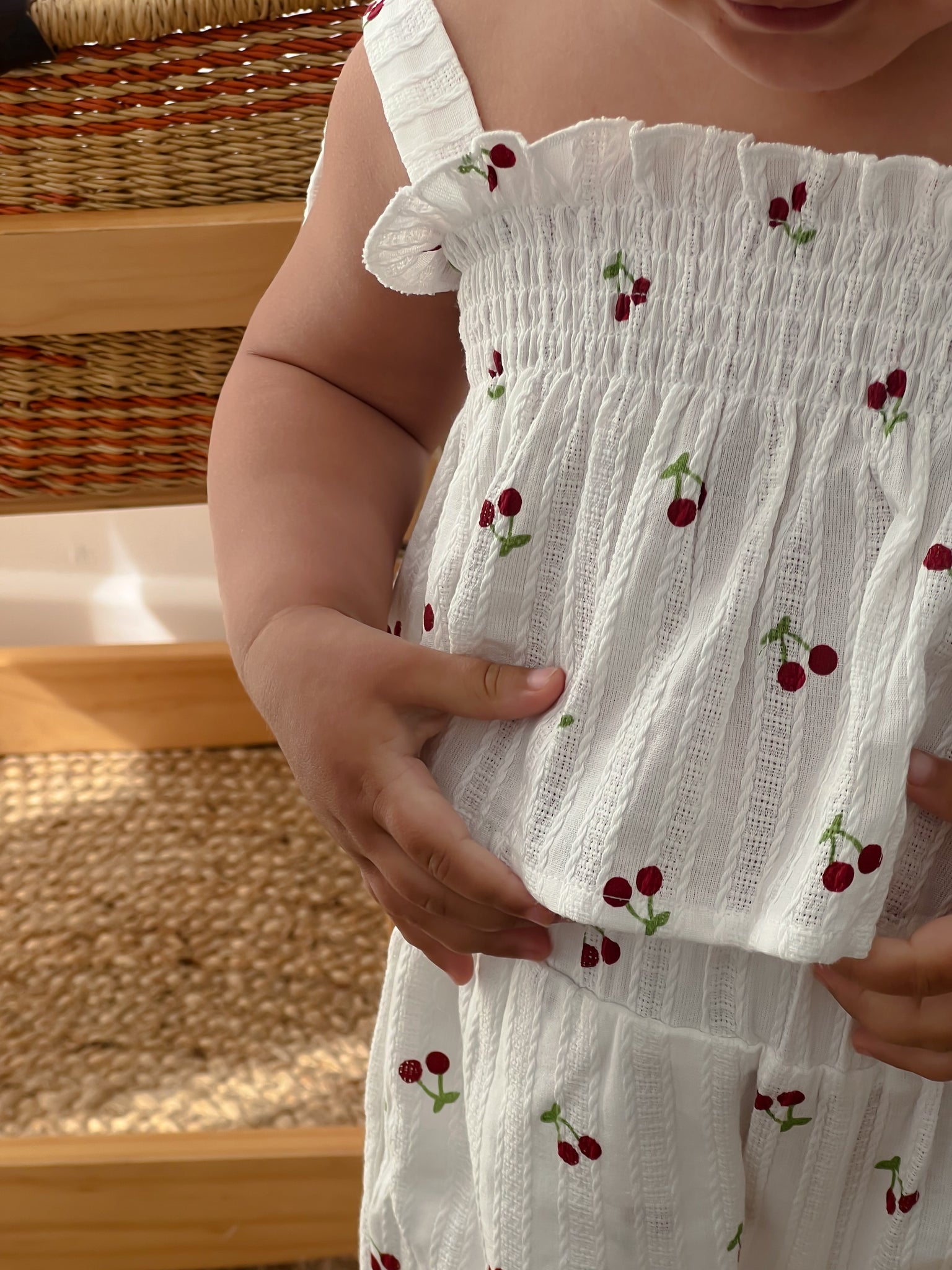Our Cherry Set is the perfect outfit for your little love. With an adorable cherry print and beautiful ties on the shoulders, it is lightweight and breathable ensuring maximum comfort. A must-have wardrobe staple this season!