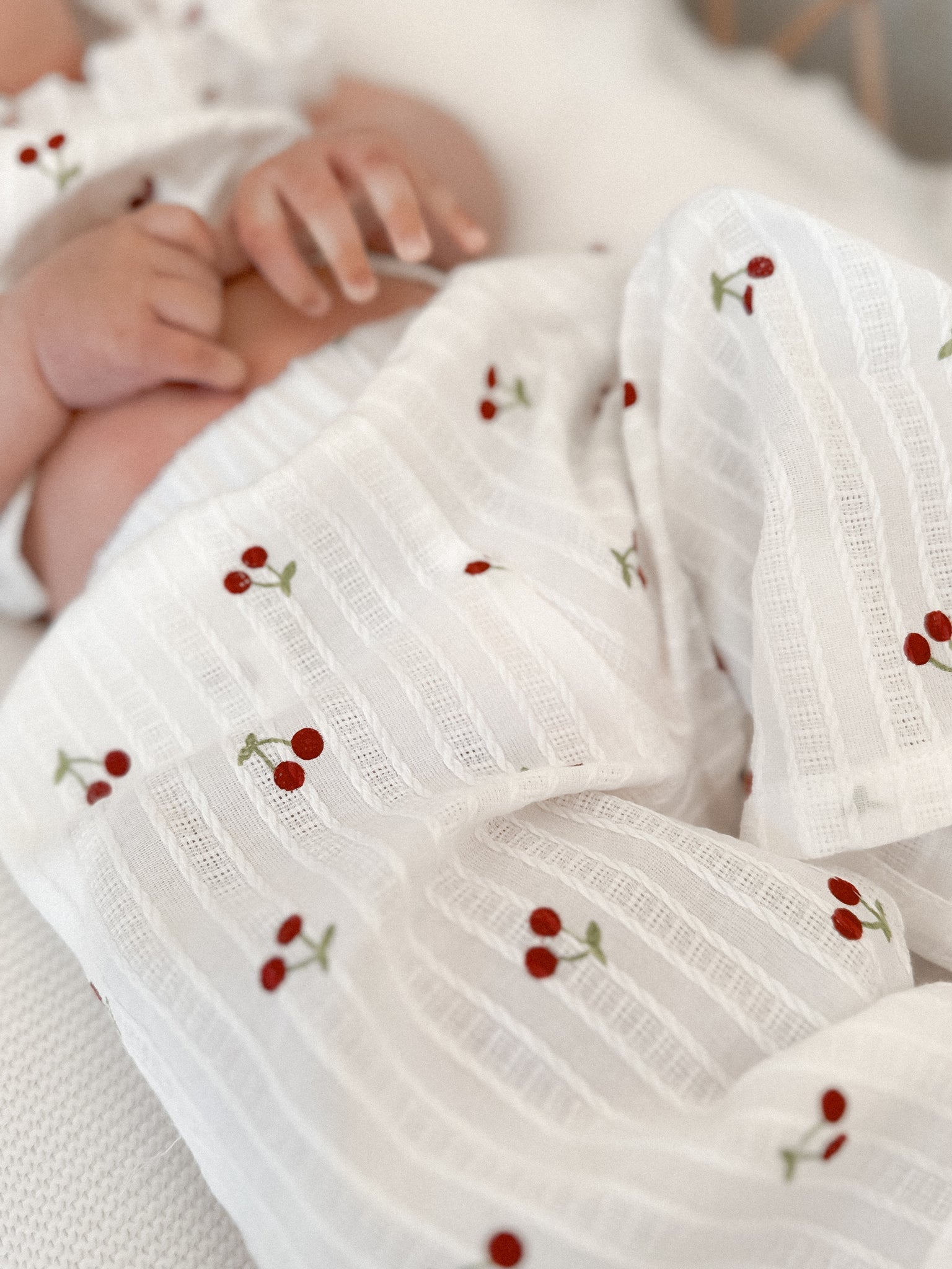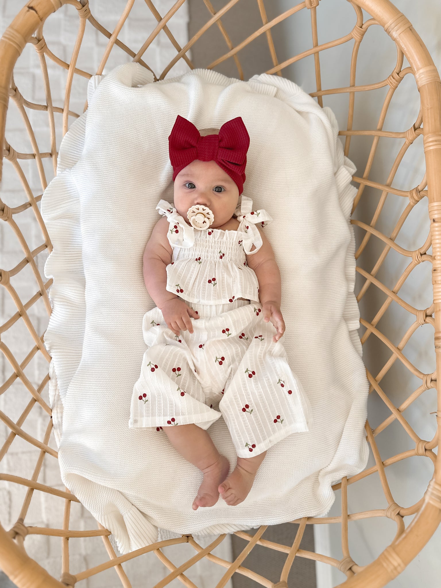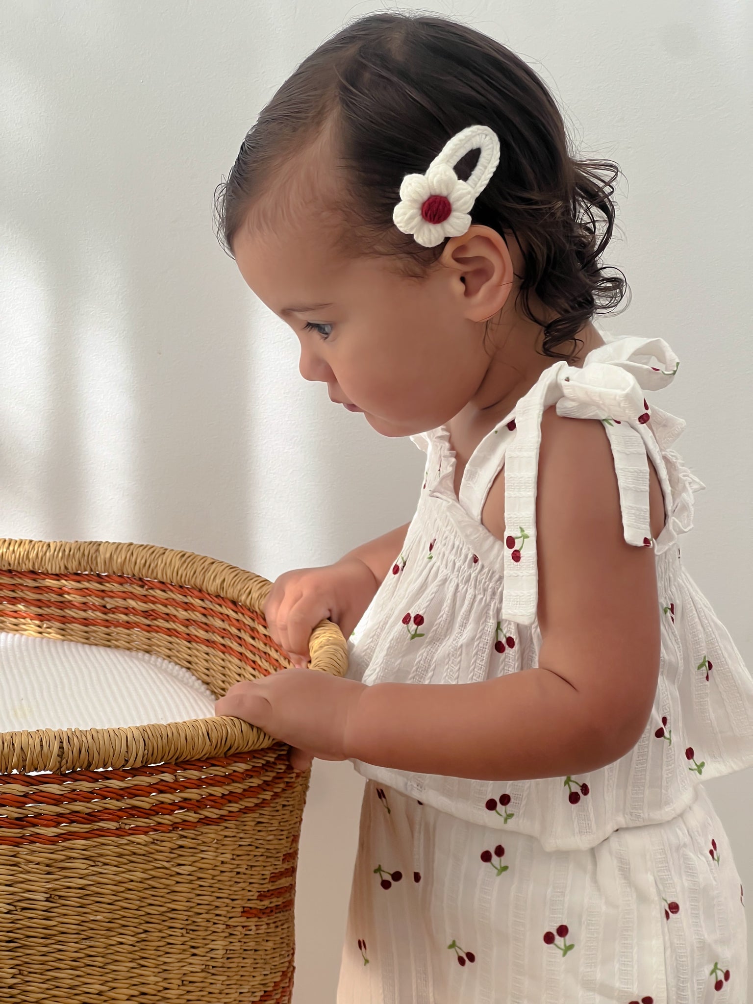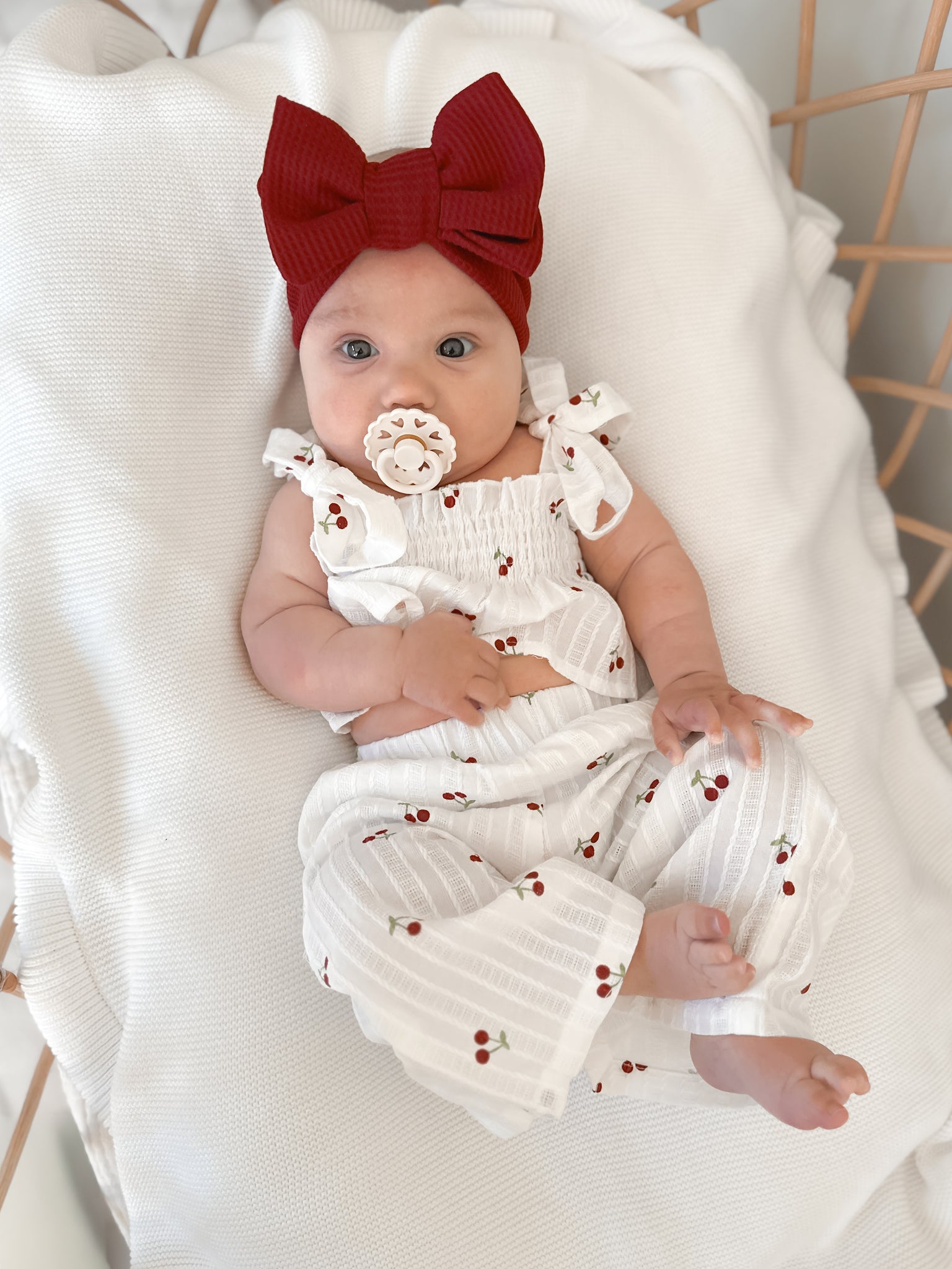 Our Cherry Set is the perfect outfit for your little love. With an adorable cherry print and beautiful ties on the shoulders, it is lightweight and breathable ensuring maximum comfort. A must-have wardrobe staple this season!
