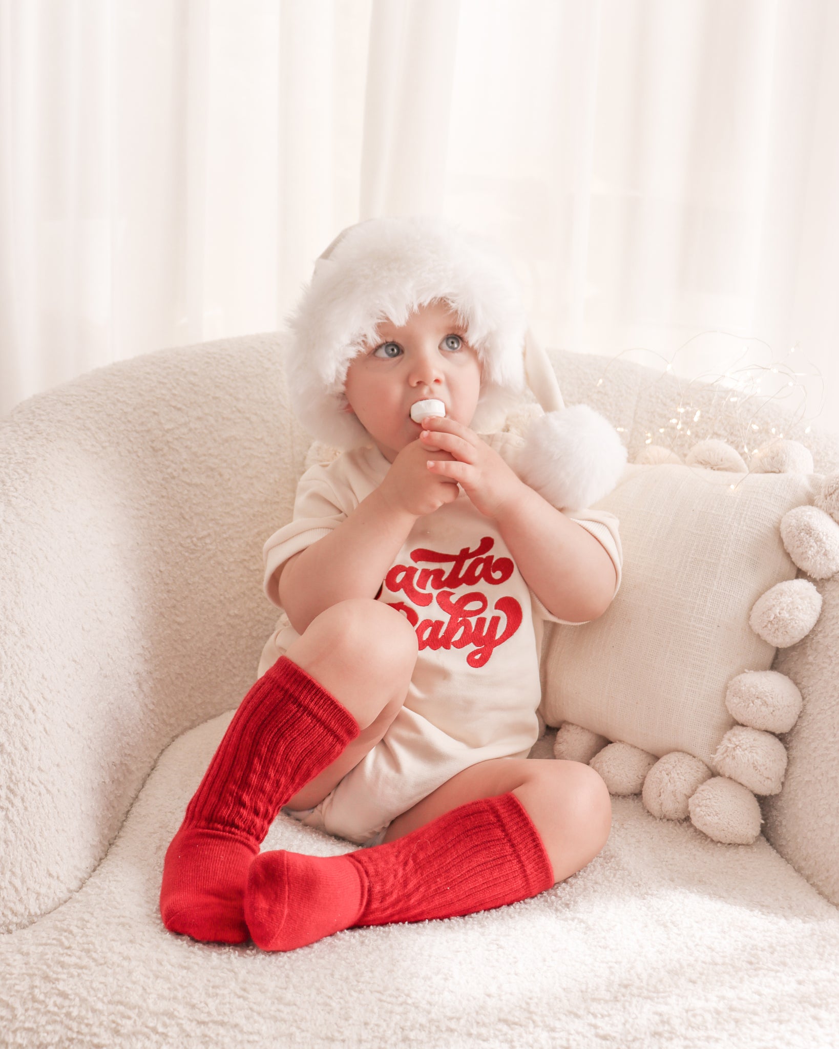 Is there anything cuter than a Santa Baby? Introducing our best selling bubble romper with a festive twist. Made from soft cotton fabric and embroidered with the cutest Santa Baby embroidery, this is the perfect gender neutral piece for your little love this holiday season. Featuring snap buttons on the neck for easy changing in size NB-2Y our sweater rompers are now available in long and short sleeves - perfect for warm and cool climates no matter where you are in the world!